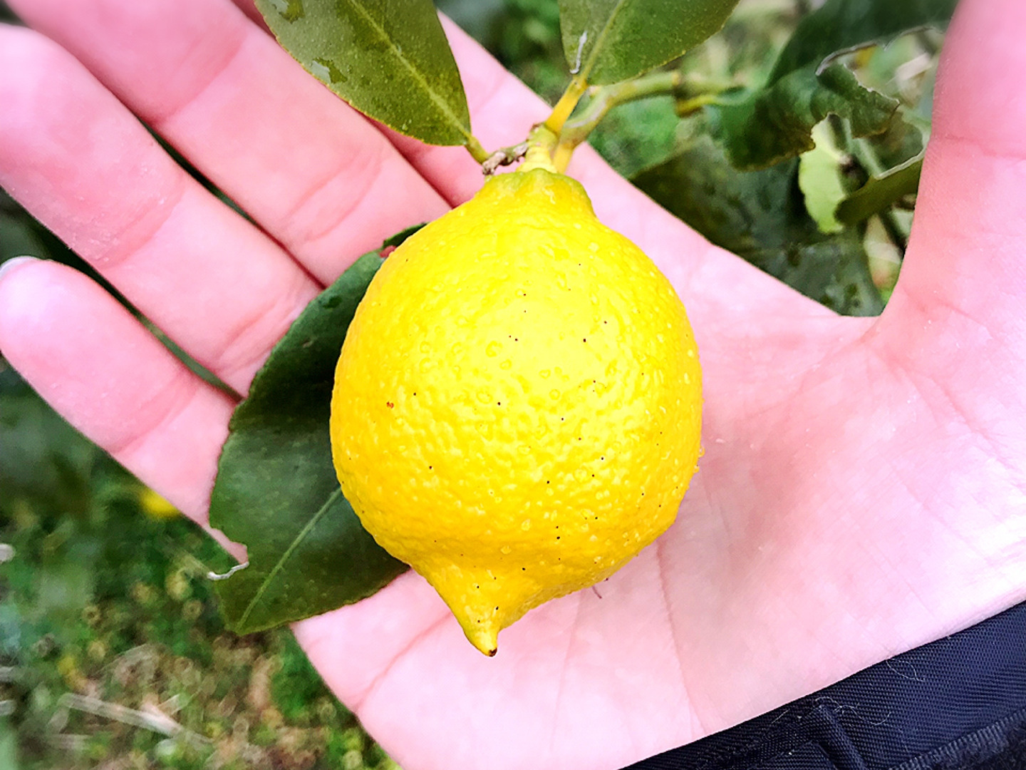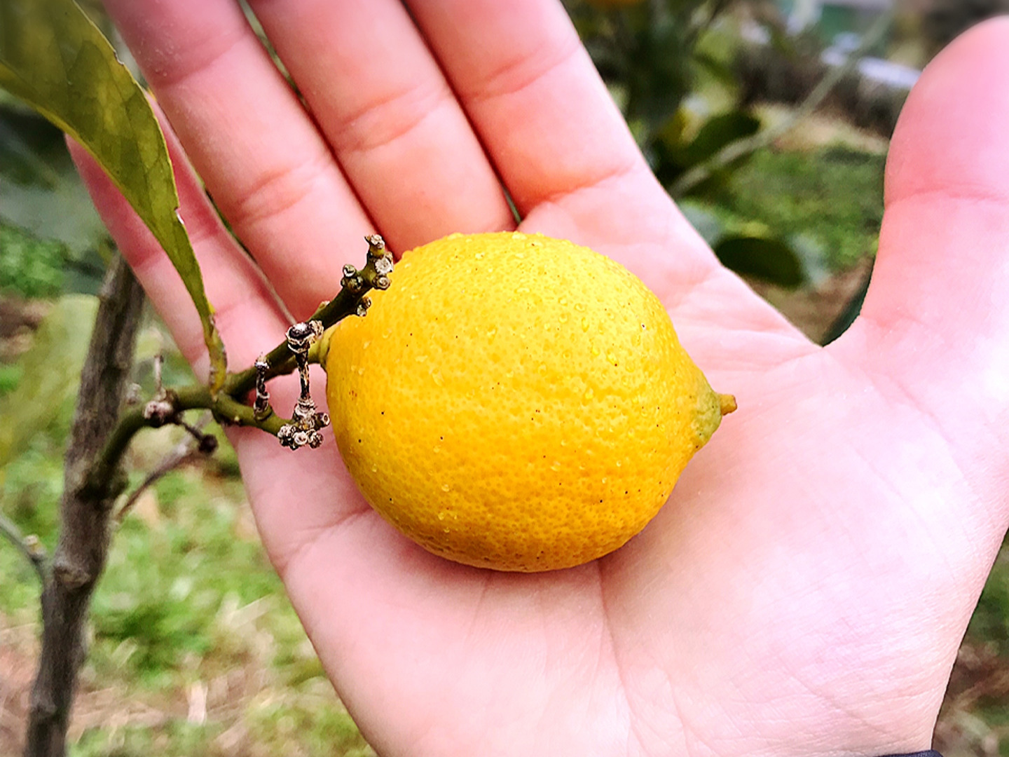 しかし、このミニレモンは約45g〜70gと、通常のレモンよりも3分の1〜2分の1程の重さ、そしてふた回り程の小ささである。