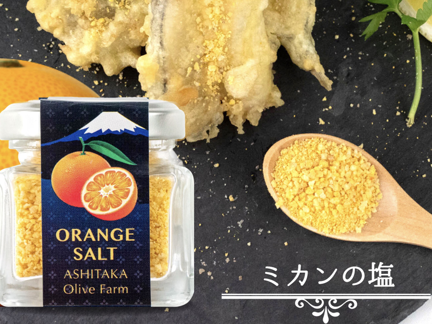 静岡県産のオリーブ、ミカンと熟成した赤ワインをミネラルたっぷりの海水を独自の技術で焼結させた焼き塩です。