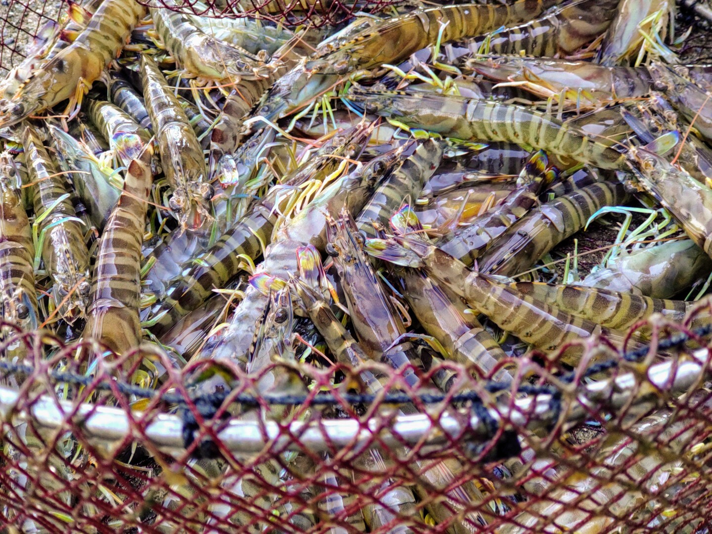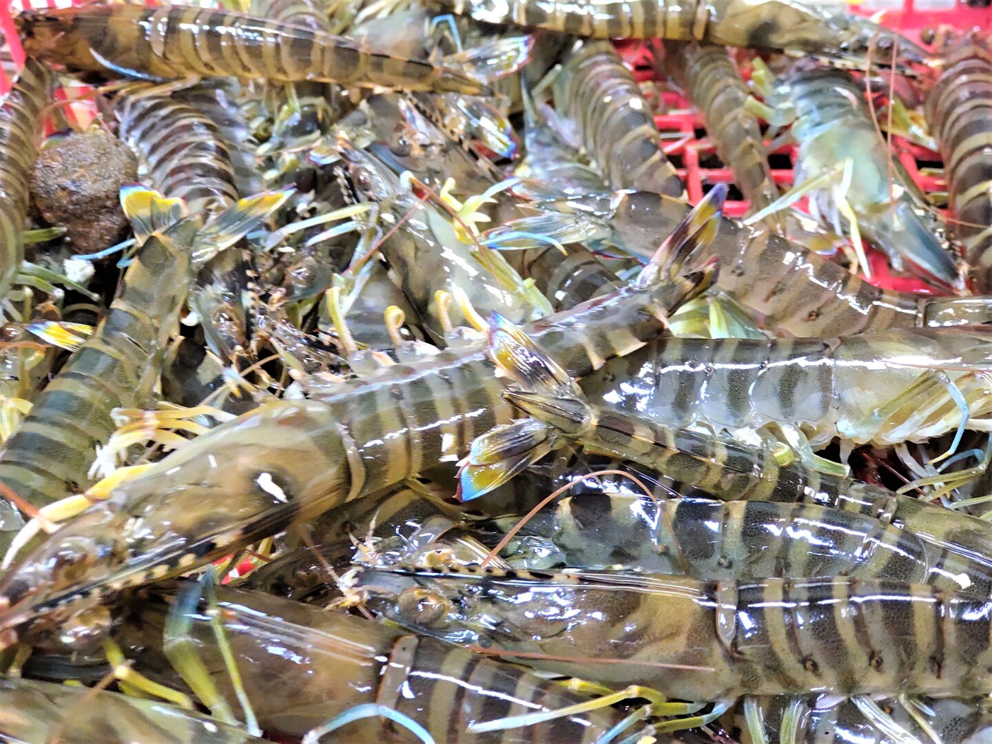 初夏から始まる養殖では、良質な配合飼料や地元産の魚を使った餌やり、毎日の水質管理、池の清掃など、丁寧で地道な作業を積み重ね、活きの良い車海老を育てています。