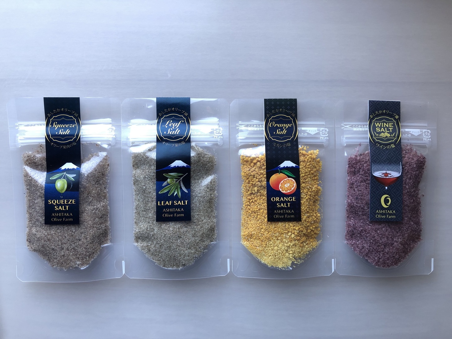 静岡県産のオリーブ、ミカンと熟成した赤ワインをミネラルたっぷりの海水を独自の技術で焼結させた焼き塩です。