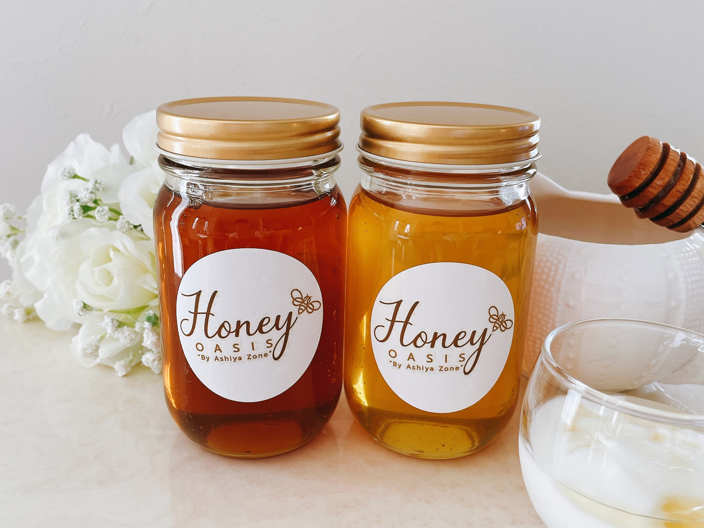 - 夏山のはちみつは、夏の強い日差しに負けず元気に咲く花々のイメージのお