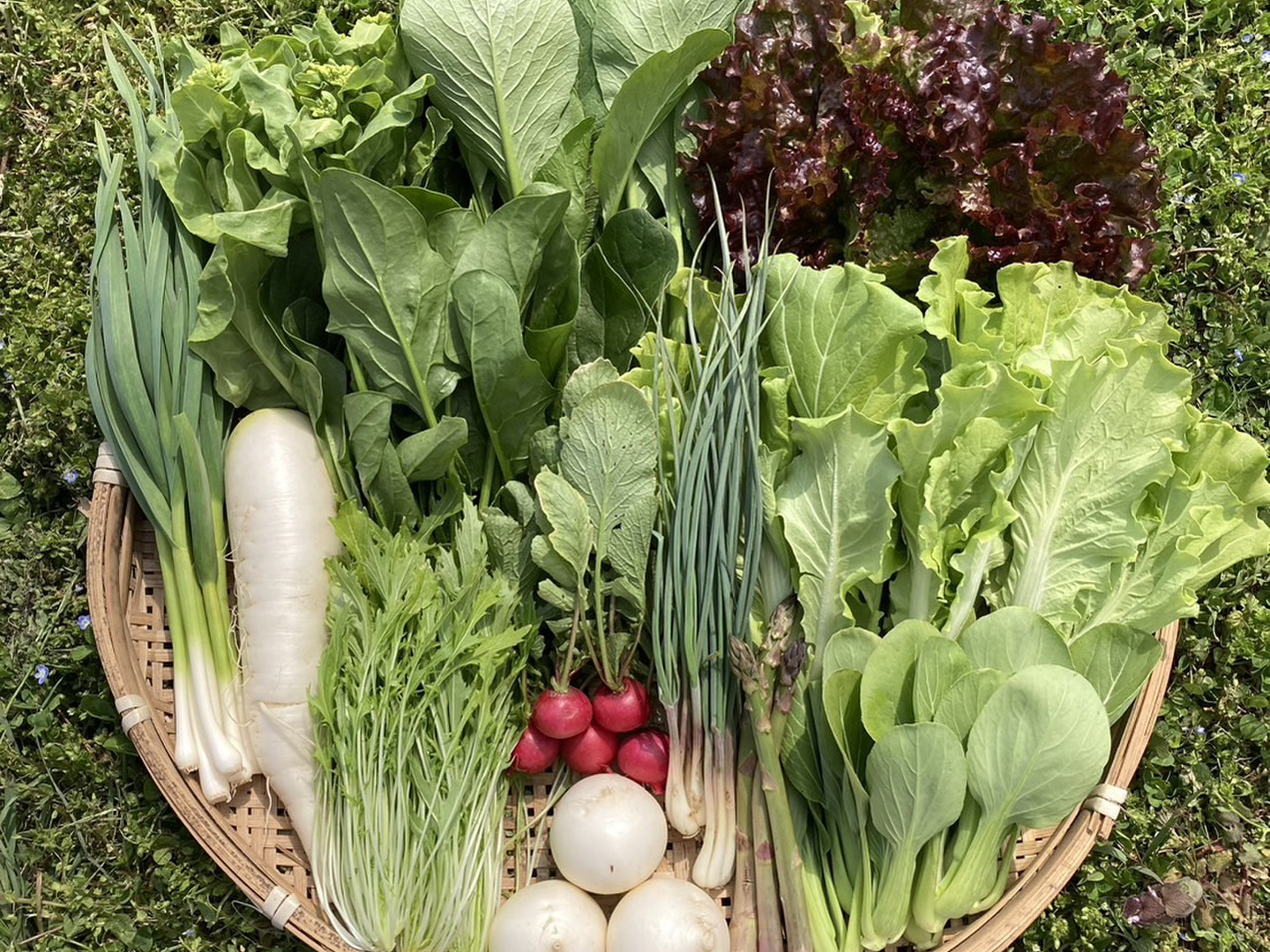 旬の野菜を70サイズ(1~2人様向き)の箱いっぱいに詰めてお届けいたします。
