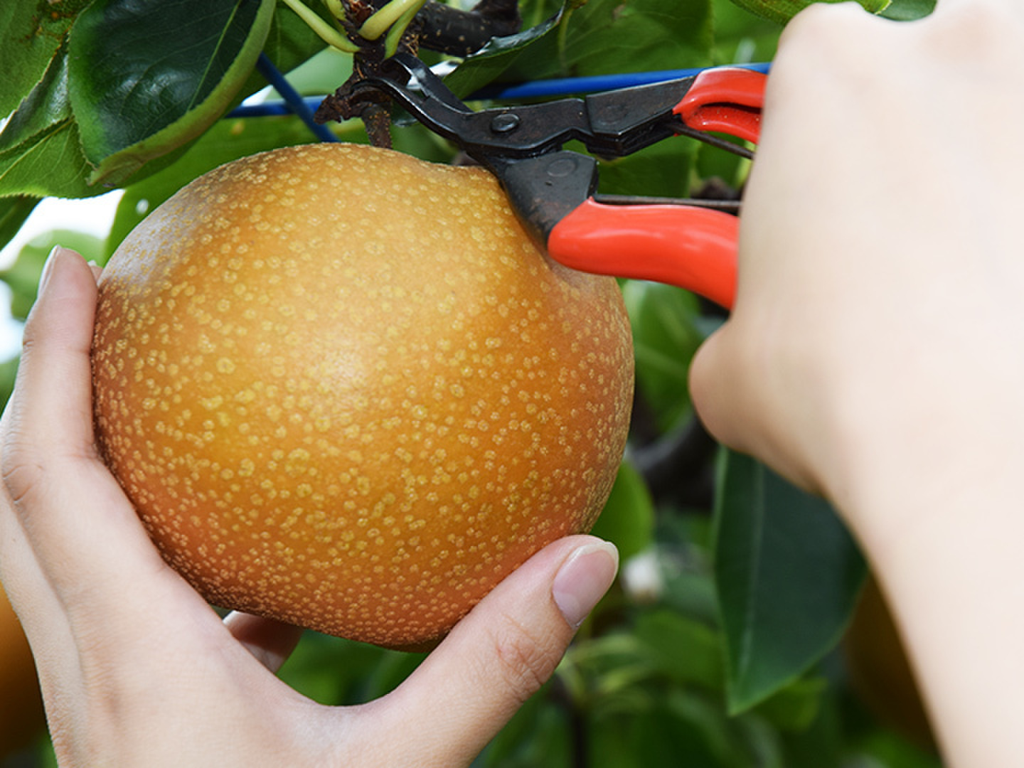 当農園の梨は、みずみずしくシャキシャキッ!とした食感で、糖度は12度以上をほこる甘さです。