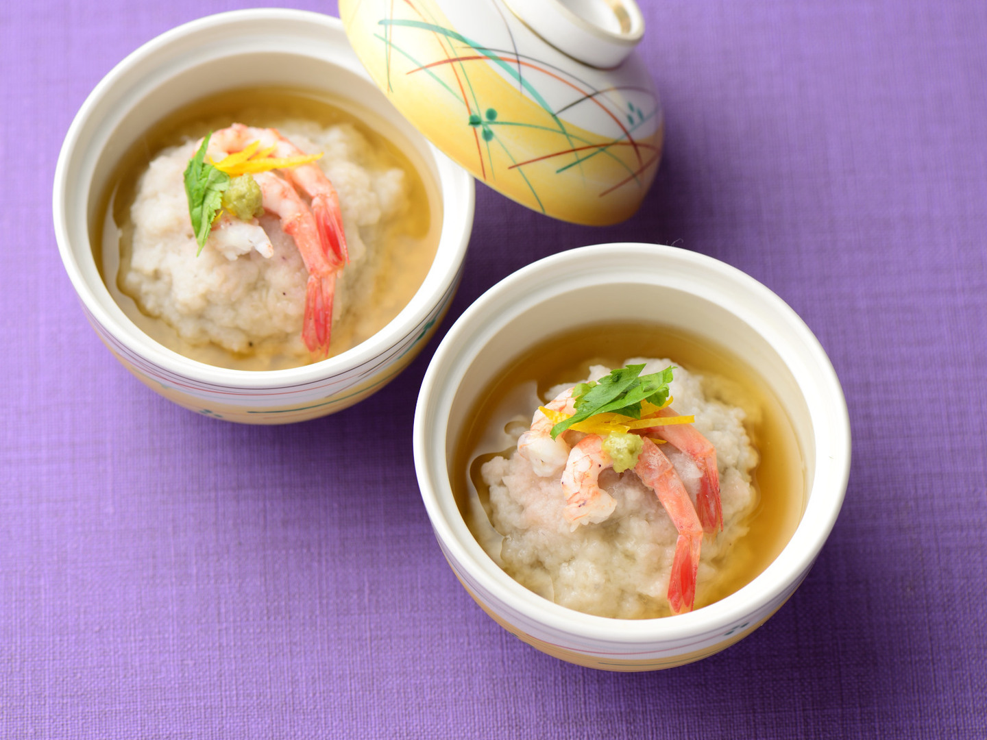 ⑦ー④に⑥をかけ、彩りにせり又はミツバと柚子の皮を添える。
