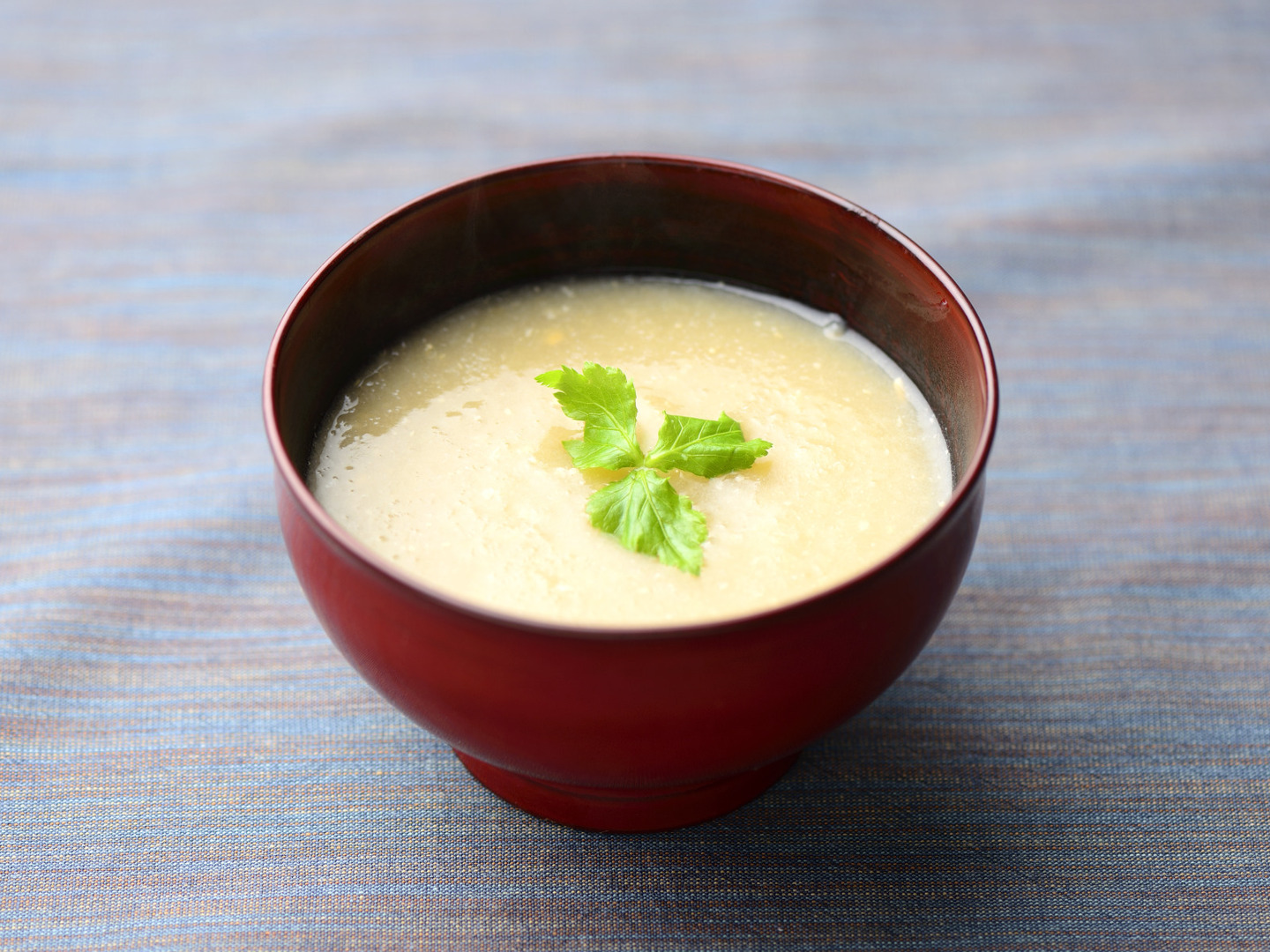 ③-とろみがつくまで煮る。(軽く絞りながら丸めて加えると団子汁にもなる)