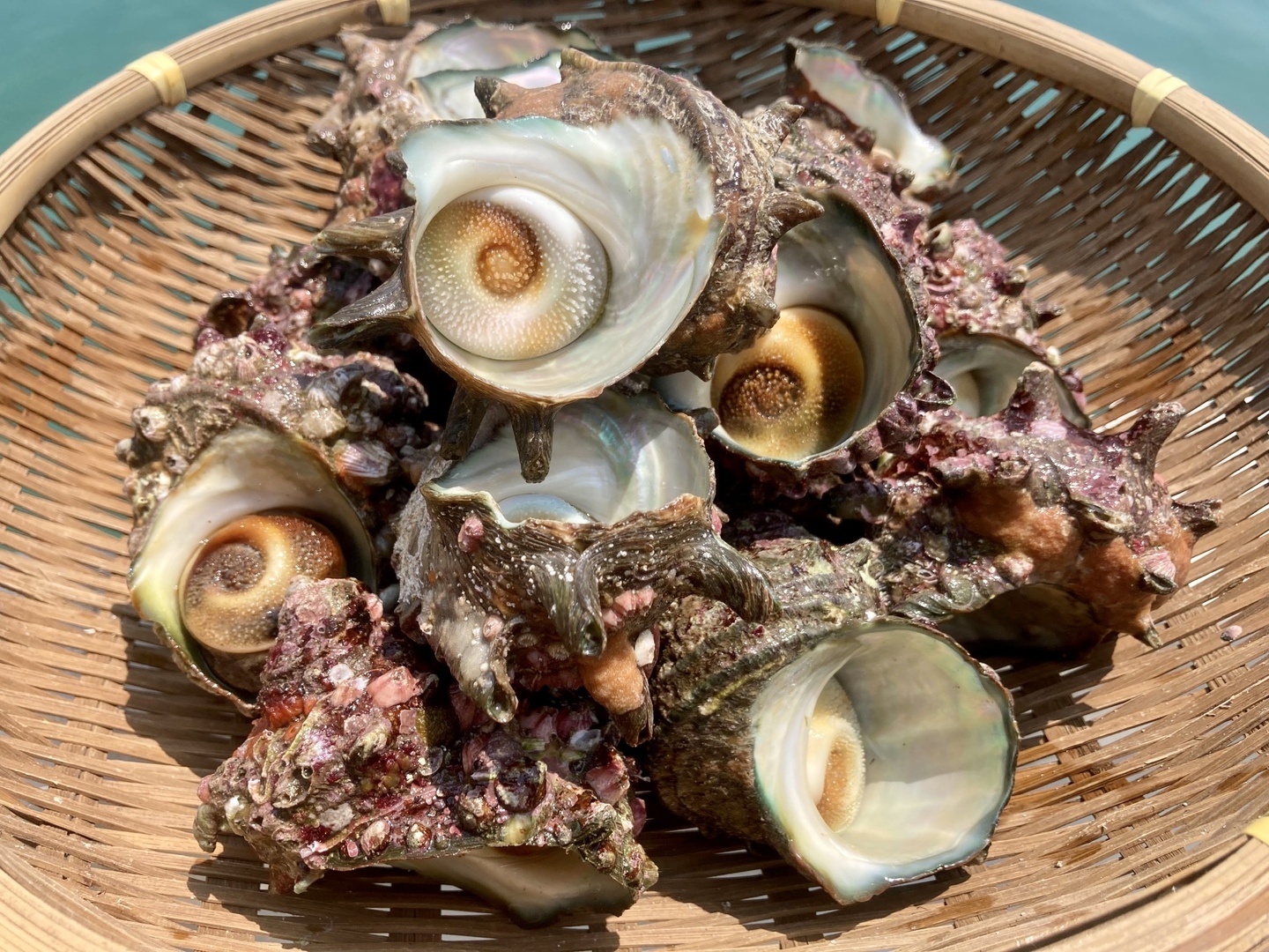 私たちが獲る天然サザエの中でも大きなサイズ(1粒あたり、7〜9cm)を厳選し、 2kg 生きたままお送りします。