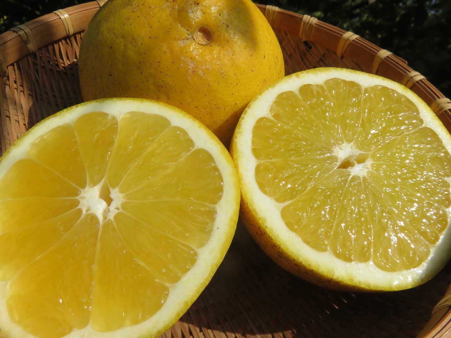 果汁がとても多く、酸味が強くてスッキリした風味をお楽しみ頂けます。果汁の多さを活かしてジュースやドレッシングの原料にしたり、お酒の搾り汁に使用するのもオススメ♪