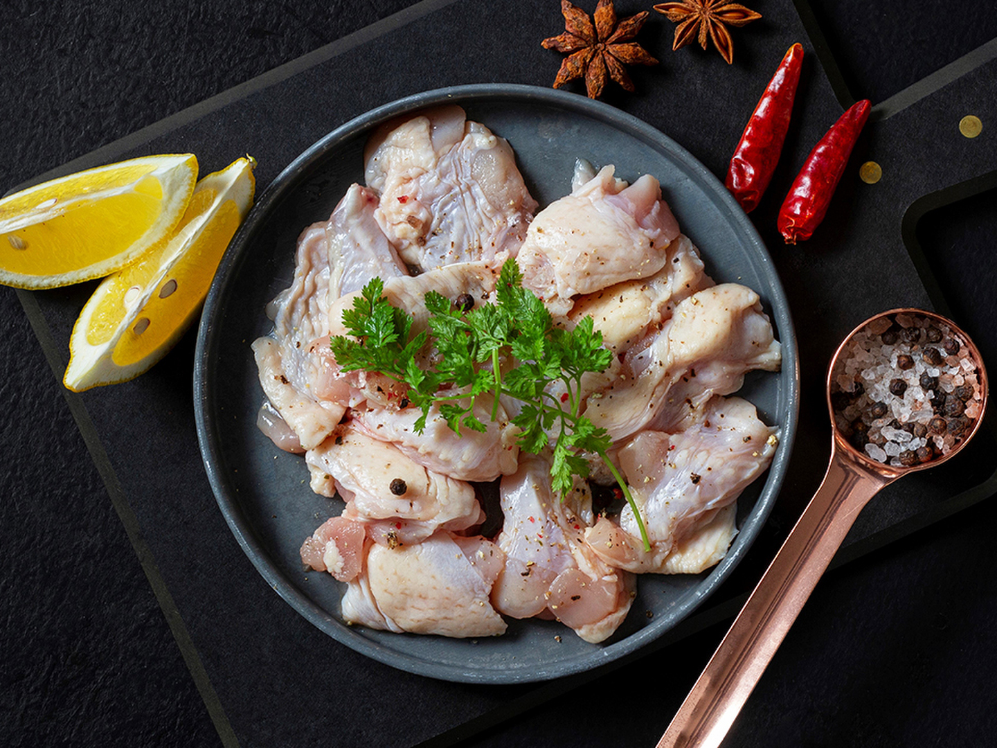 熊本県産銘柄赤鶏「The CHICKEN AKA」のボンレスウィング(骨抜き手羽元)はほどよい脂肪とコクがあり手羽先よりも淡白でさっぱりとした味わいが特徴です。
