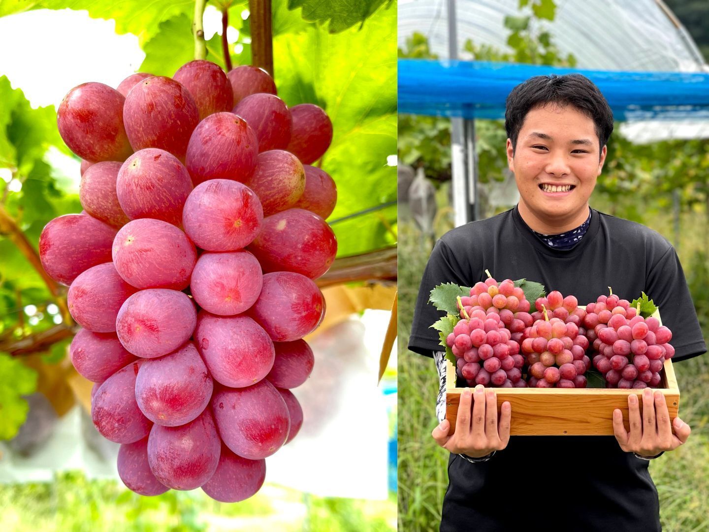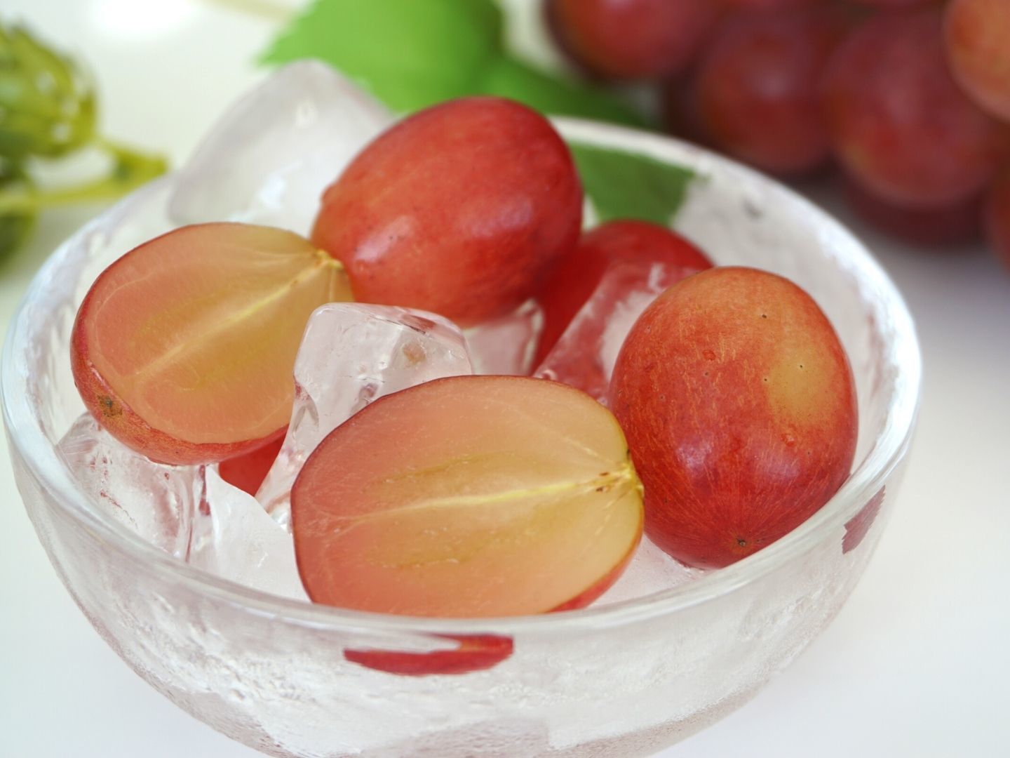 果粒が楕円形で、シャキシャキとした独特の食感で、 種無しで皮ごと食べられ、ほんのり青リンゴのような風味の柔らかな酸味も感じられ、しっかり甘いのにさっぱりとした食味です。