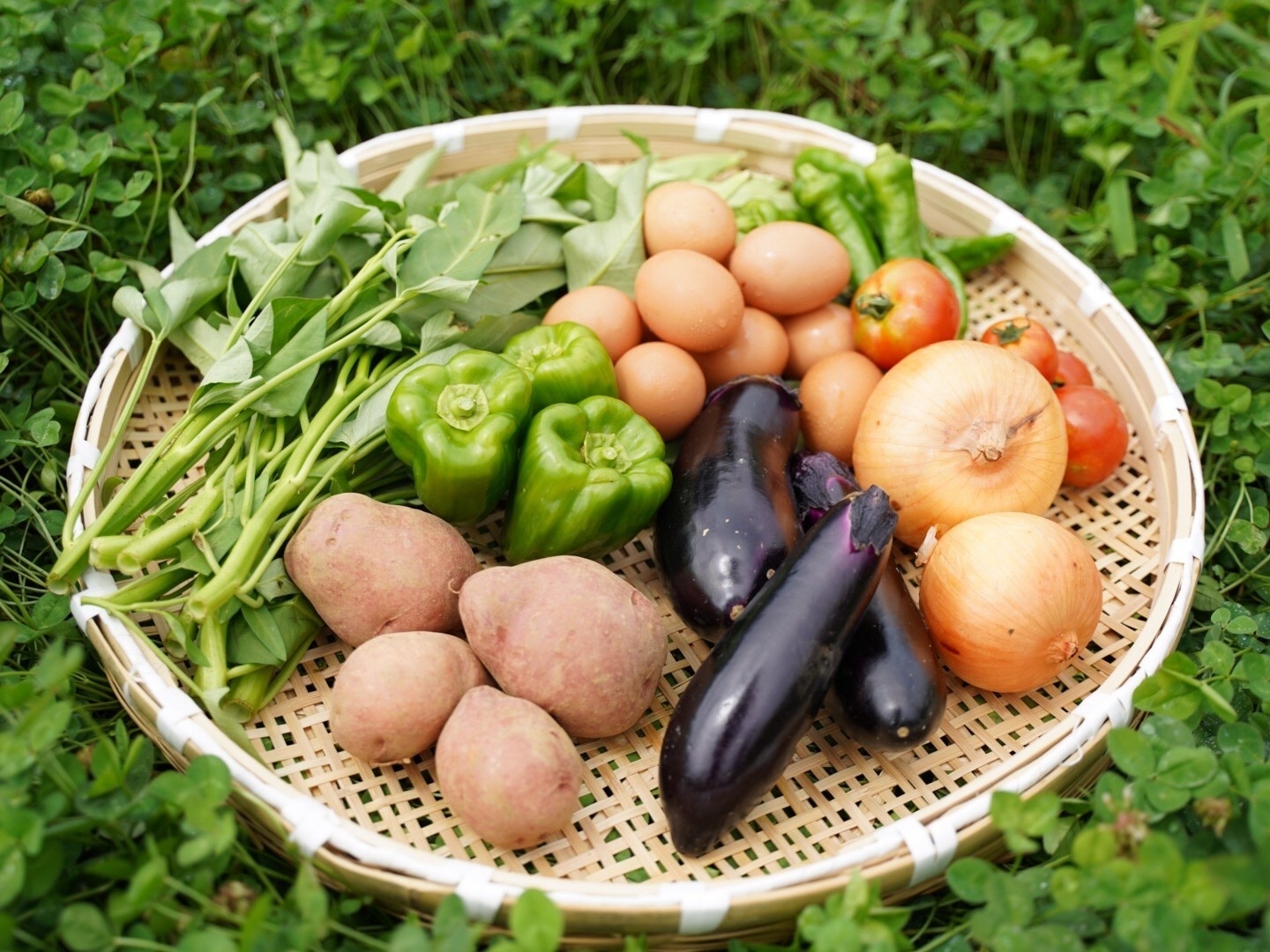 商品について あわせ買い対象 同生産者の別の「あわせ買い対象」商品と一緒にご注文いただくと、送料をまとめてお届けできる場合があります。 生産者からのお知らせ ※配送日の指定について関東地方の方水曜午前×水曜午後◯木曜終日◯金曜午前×金曜午後◯土曜終日◯北海道・沖縄とその他離島にお住いの方への販売を休止しております。申し訳ございません。※野菜セットご注文の方は、野菜の内容指定はできませんので予めご了承下さい。 もっと見る 内容 野菜8種、卵6個 発送 日本郵便 送料 ¥ クール便(冷蔵) + ¥ 360 数量1点ごとに送料が発生します。 種別 野菜 卵・乳製品 野菜セット 産地 岡山県 農薬化学肥料不使用 野菜 卵・乳製品 野菜セット 家庭用 岡山県x野菜 岡山県x卵・乳製品 岡山県x野菜セット 商品説明 <商品内容>豊かな森の中にある農場で育った野菜と平飼い卵のセットです。・野菜日常的に使える野菜を中心に、バランス良く8種類の野菜は入ります。・平飼い卵広い鶏舎の中を自由に走りまわり、すくすく育ったニワトリの卵です。お米やもち麦を中心に農場の有機野菜をたくさん食べた卵は甘みがあります。黄身は白っぽいのは、輸入トウモロコシ飼料を使わず、こだわって育てている証拠です。【野菜の内容例】1~3月白菜、大根、里芋、サツマイモ、じゃがいも、カボチャ、カブ、ニンジン、ブロッコリー、小松菜、ほうれん草、水菜、壬生菜、菜の花、キャベツ4~6月菜花、小松菜、カブ、キャベツ、ニンジン、大根、ブロッコリー、スナップエンドウ、ズッキーニ、サニーレタス、インゲン、サツマイモ、ニンニク、玉ねぎ7~9月トマト、ナス、ピーマン、キュウリ、万願寺とうがらし、ジャガイモ、空心菜、モロヘイヤ、ジャガイモ、玉ねぎ、ニンニク10月~12月サニーレタス、小松菜、水菜、ほうれん草、カブ、キャベツ、サツマイモ、玉ねぎ、カボチャ、白菜、大根※野菜のご指定はできませんので予めご了承下さい。※冬の野菜(白菜・大根など)セットはボリュームが大きくなるので、段ボールのサイズは100サイズに変わります。 もっと見る この商品のことをお友達にもシェアしませんか ポスト シェア