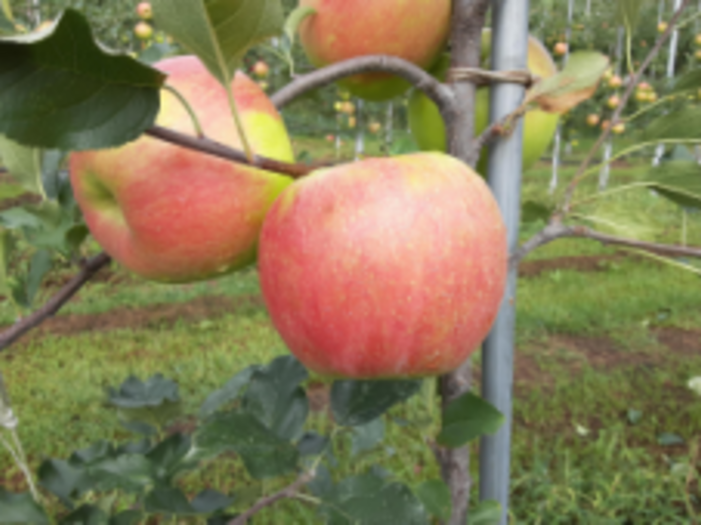 味の王様ふじと夏リンゴの甘いつがるを交配した品種で、秋映、シナノゴールドと合わせて秋のリンゴ3兄弟として皆様に喜ばれております。