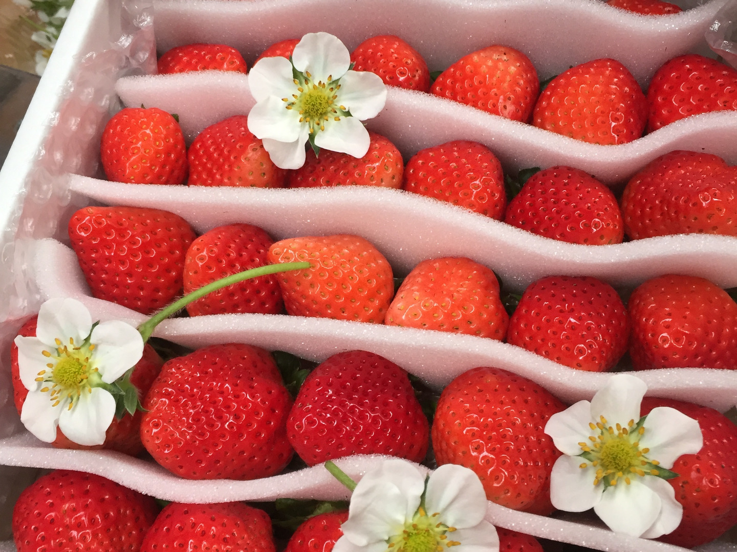収穫シーズンのイチゴに化学農薬は使用していないので、安心して食べていただけます^_^
