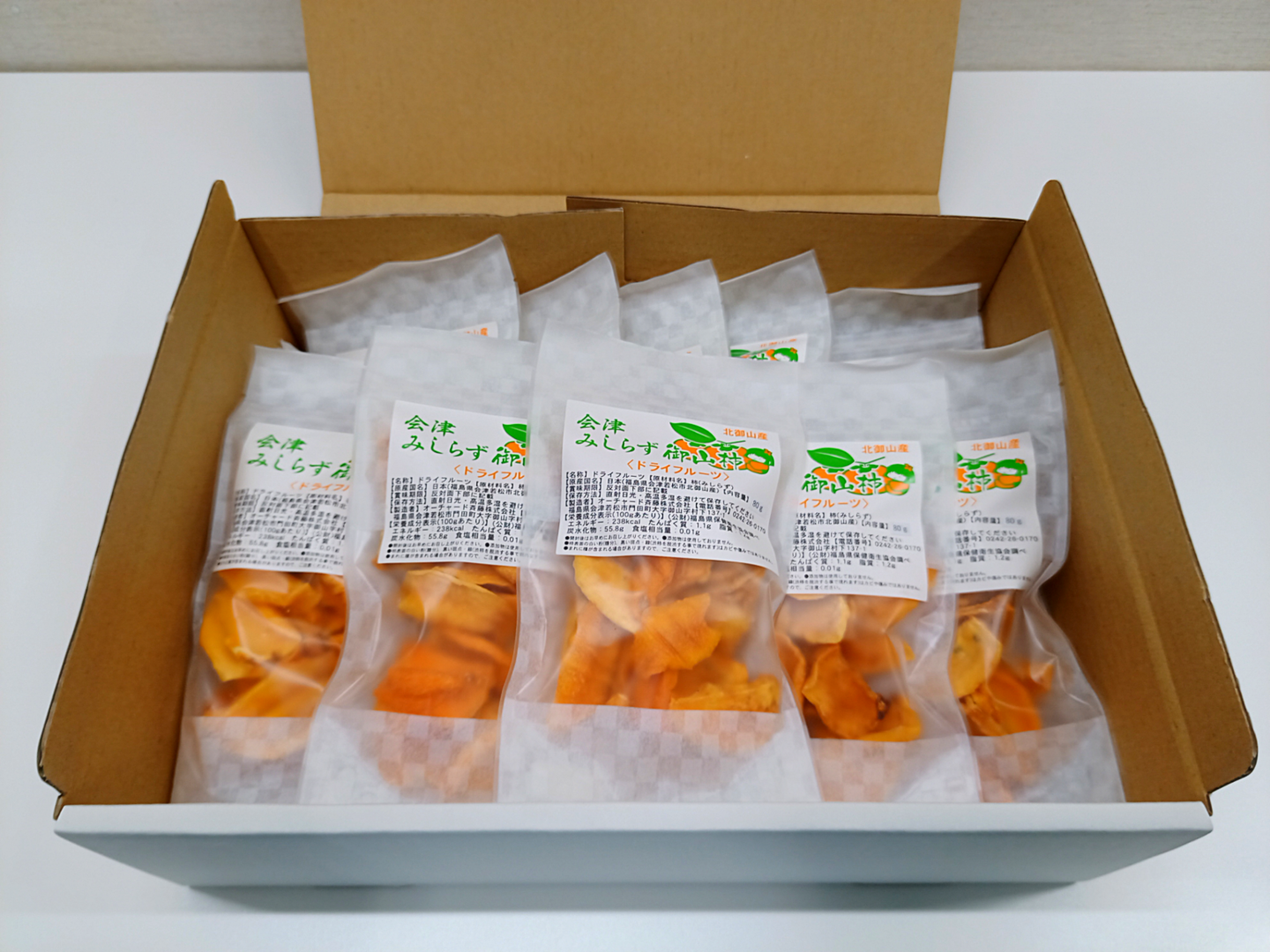 みしらず柿を一つ一つ丁寧に皮をむき、温風乾燥機でじっくりと乾燥させたドライフルーツです。