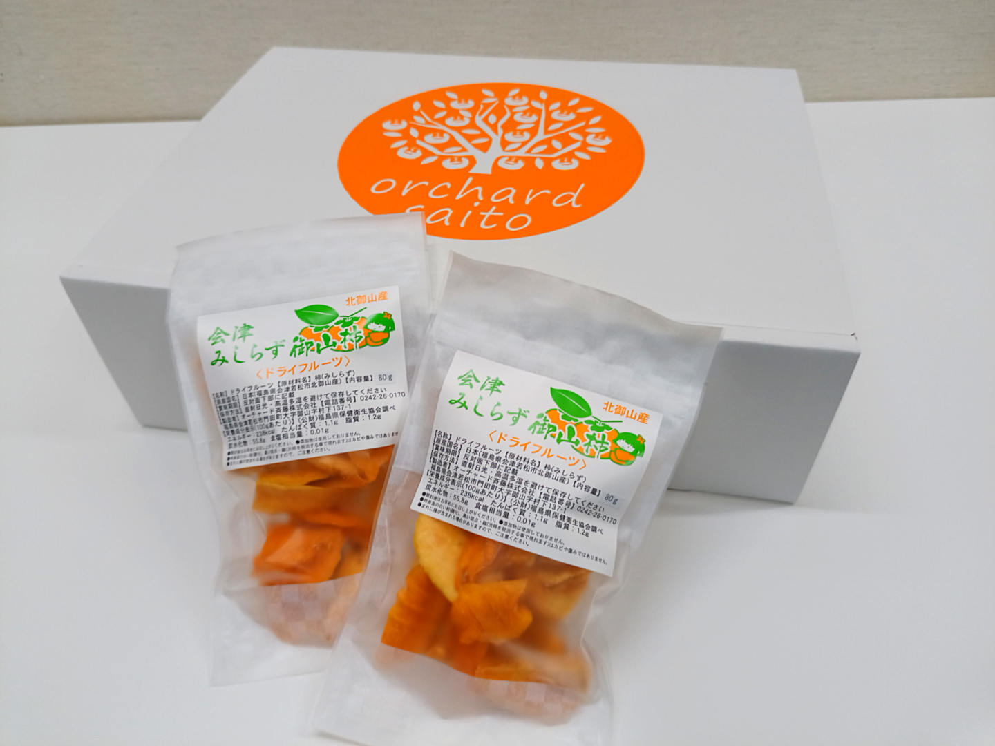 ※柿表面に白い斑点が現れる事がございますが、柿の糖分が表面にしみ出し乾いたものですので、安心してお召し上がりください。