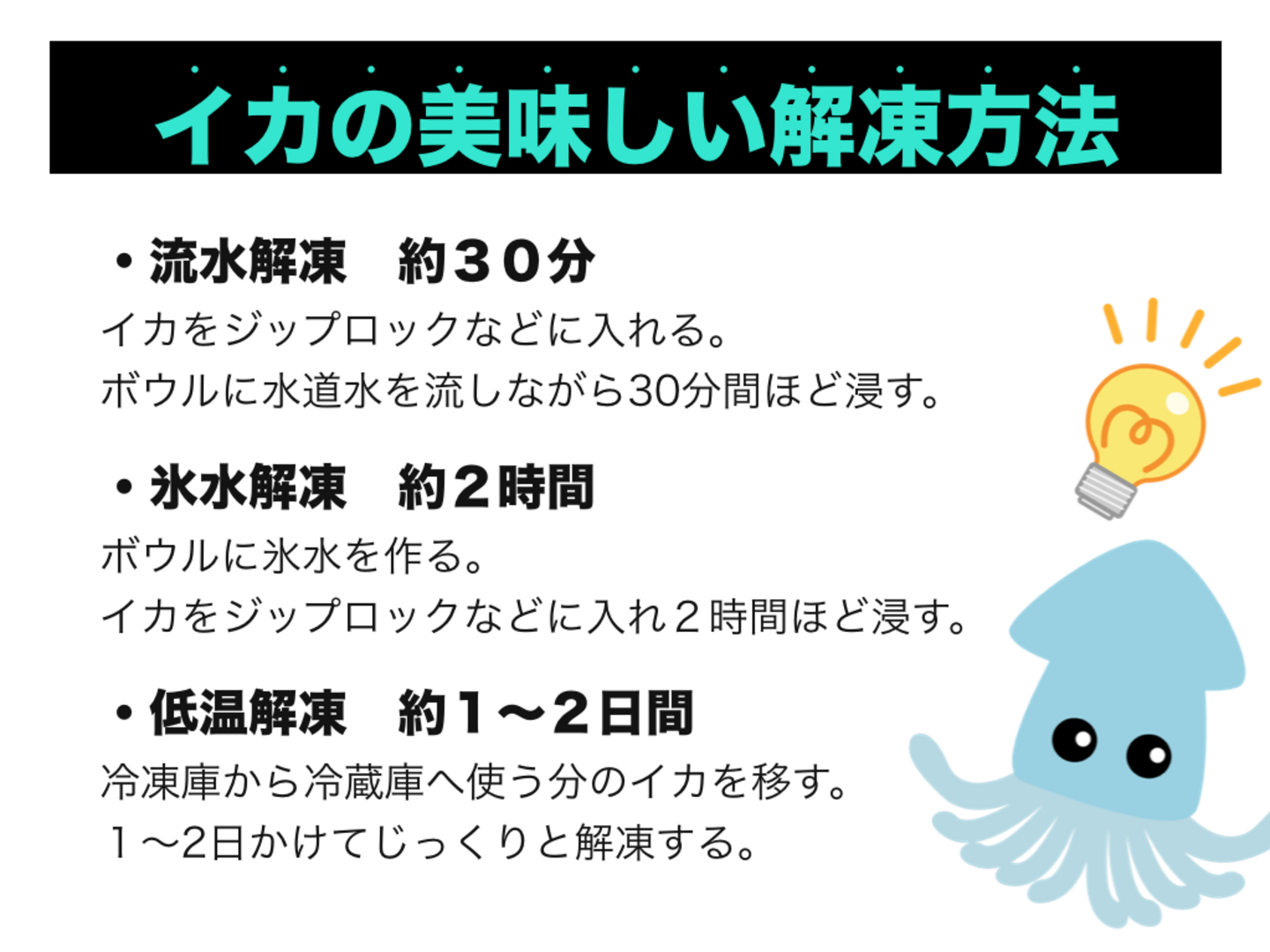 オススメの食べ方はお刺身やお寿司ですが、フライや天麩羅、塩焼き、バター焼きにして火を通すことで、よりイカの風味と旨味を感じていただけます。