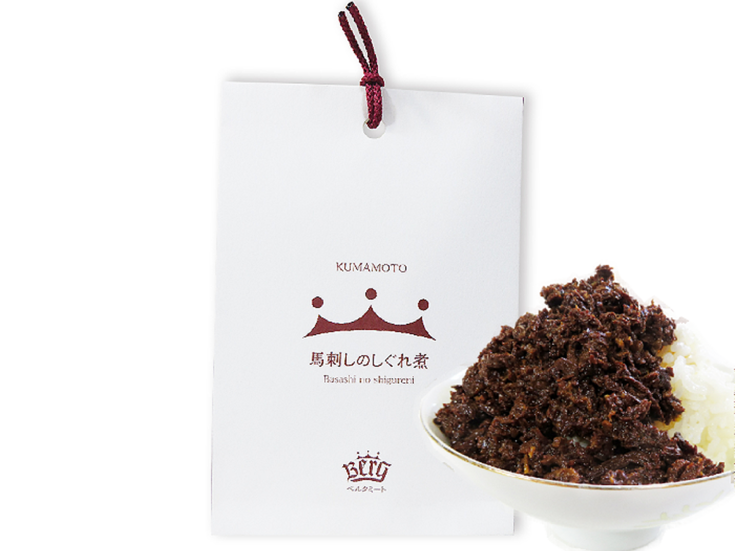 ■ 厳選した良質の馬さし肉を生姜と肥後の赤酒で十分煮込んだベルクミートならではの風味を加えた無添加のしぐれ煮。