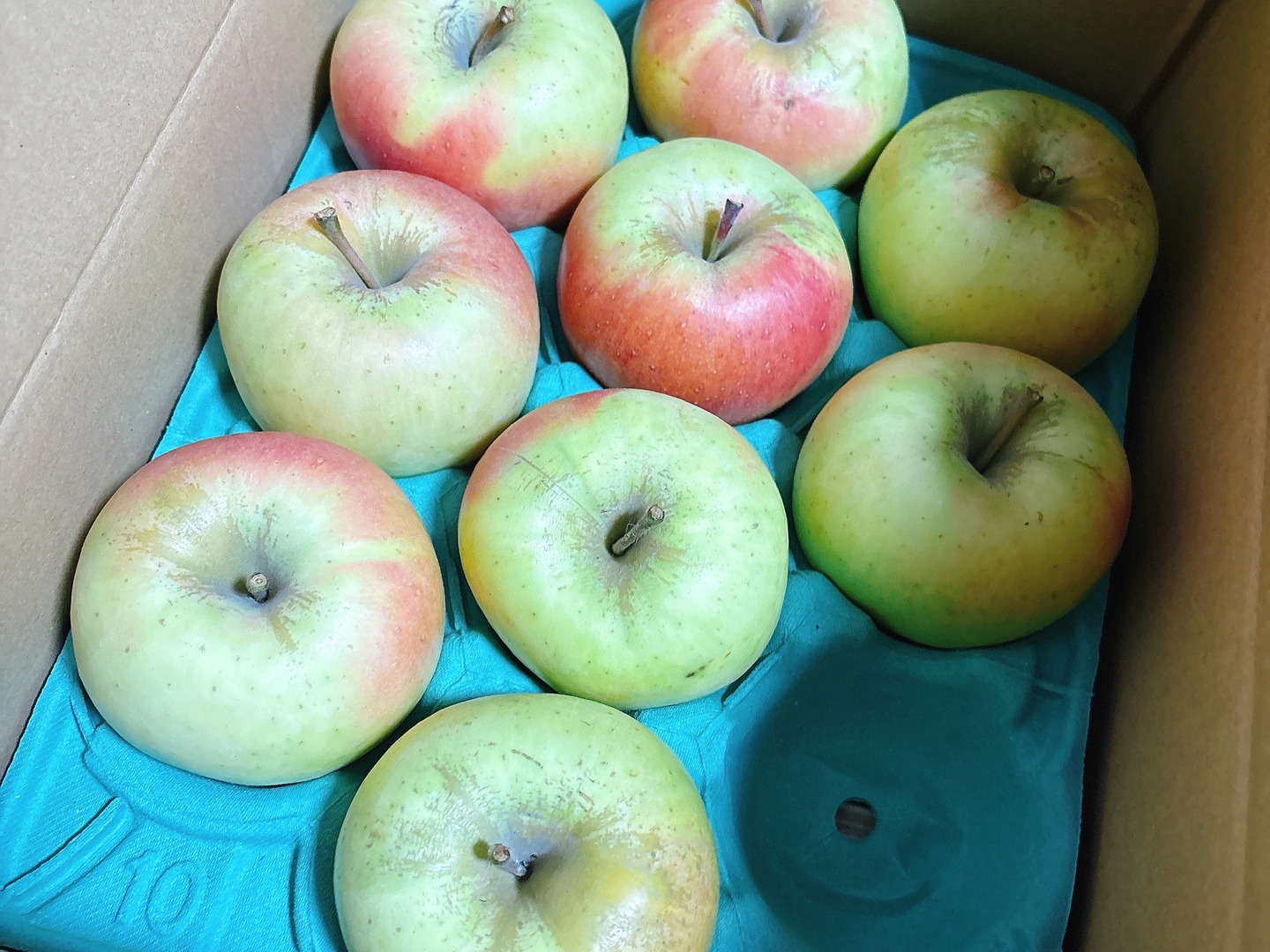 「ぐんま名月」は、ほとんどで中心(種の周り)に蜜が入りますが、果肉全体に霜降り状に入ることもあります。蜜は生育状況や、収穫後に時間の経過とともに、果肉に浸透して見えづらくなります。