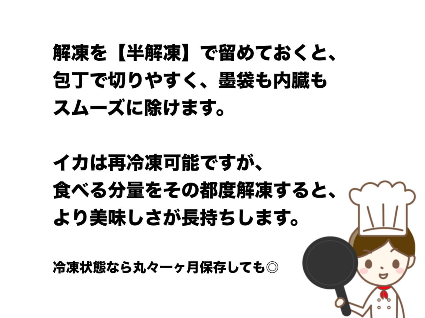 イカ類は冷凍すると更に甘味が増すのですが、釣りたてを真空パックにて新鮮なまま冷凍したことで美味しさと日持ちの両方をアップさせる事に成功しました。