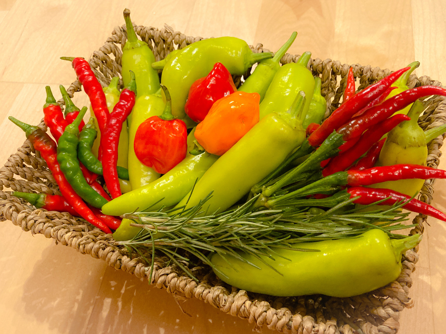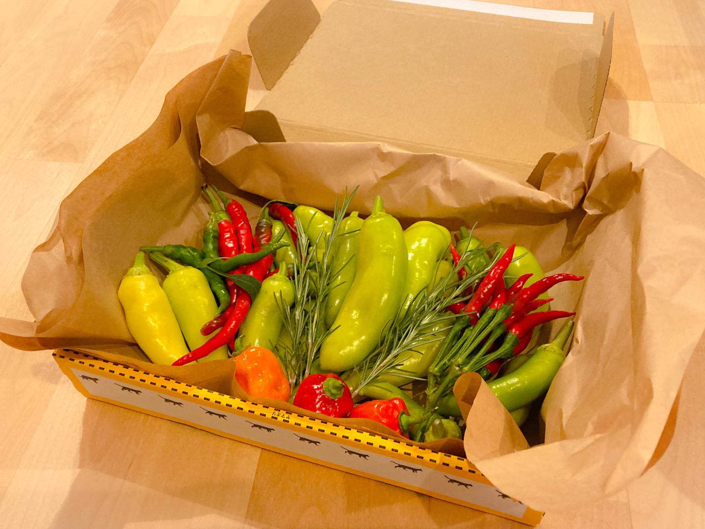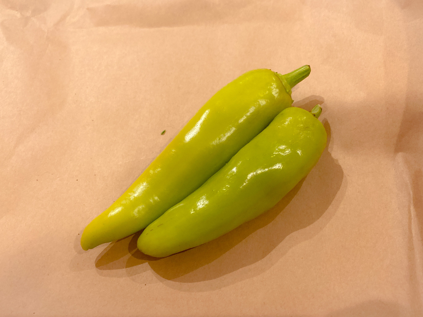 今回の中心となる【ハンガリアンイエローワックスペッパー】は肉厚で食べ応えのある唐辛子です。