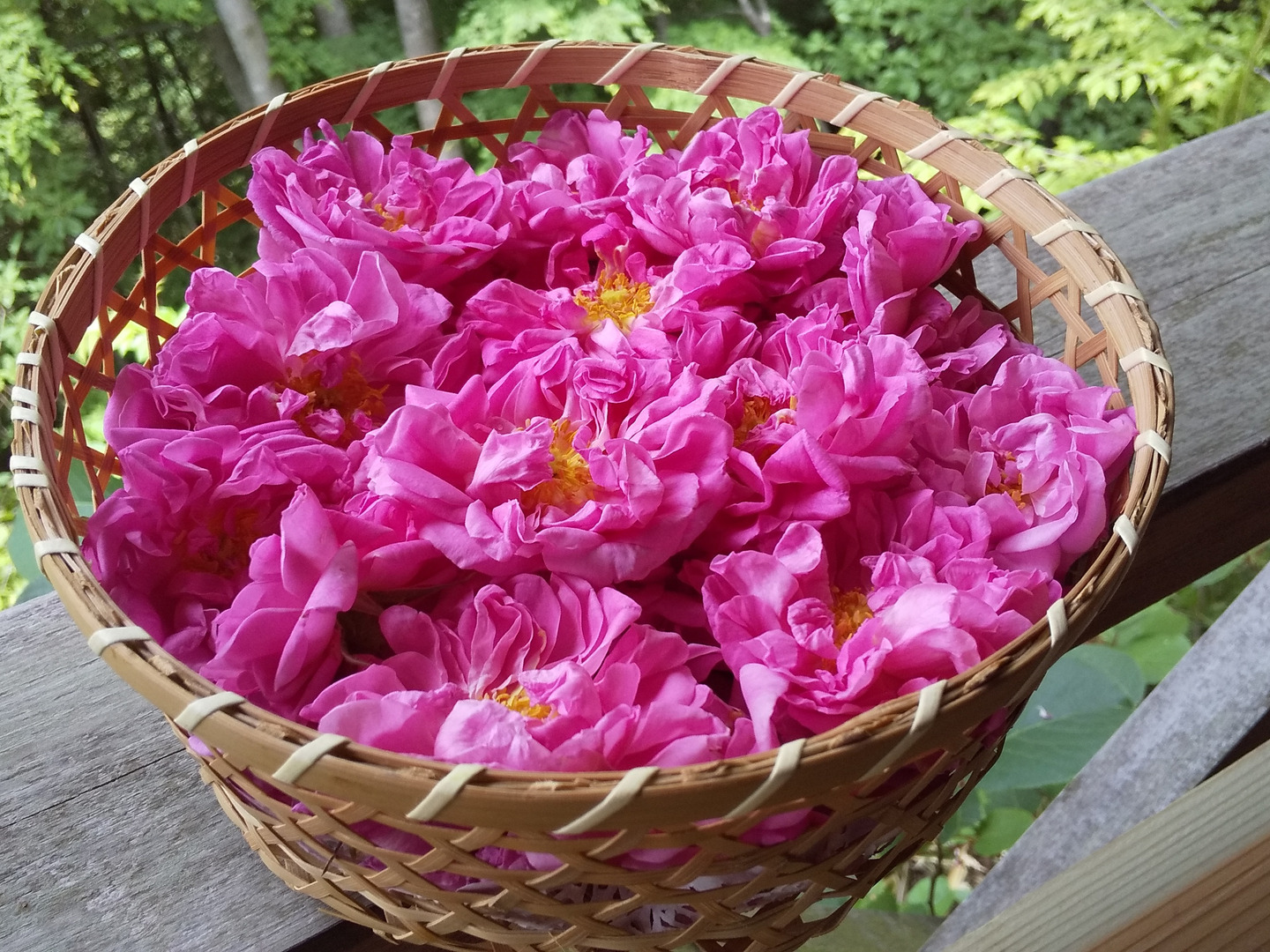 神石高原町で農薬に頼らず栽培されたバラを新鮮なうちに一つ一つ手摘みで収穫し、手作業で解体した花びらを冷凍し、無添加で加工しております。