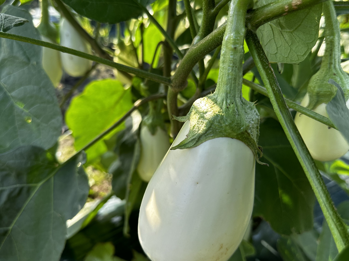 「白ナス」ヨーロッパでは定番の白いナス。中身はトロトロ!!素揚げでタレに漬けると最高に美味です!!