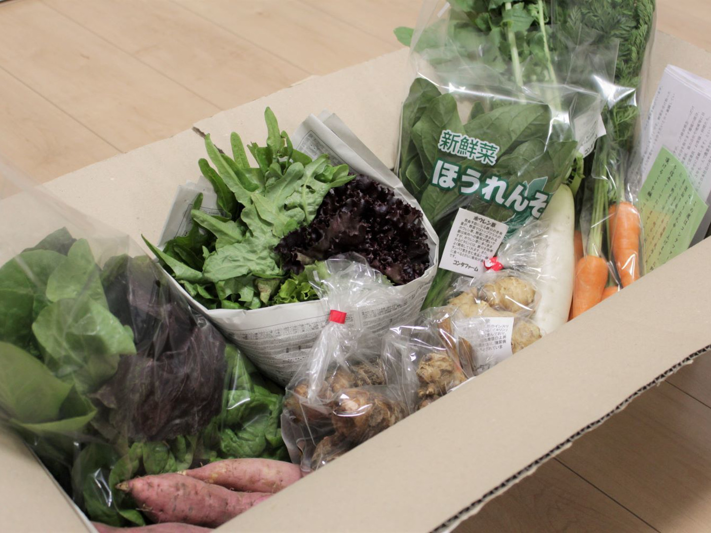 同梱品 (お野菜の説明、食べ方レシピ、コンタ通信)