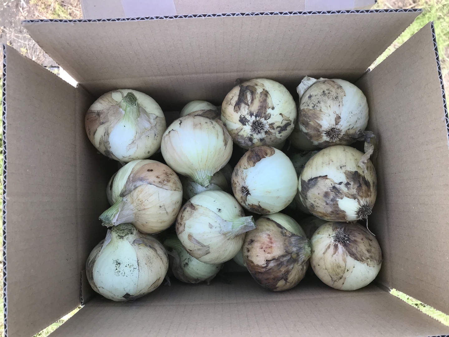 鹿児島産の新玉ねぎ注文を受けてから、収穫日に収穫した箱込み2キロ前後を畑の空気も収穫しながらAB品大中小混合箱詰めして、当日発送します^_^