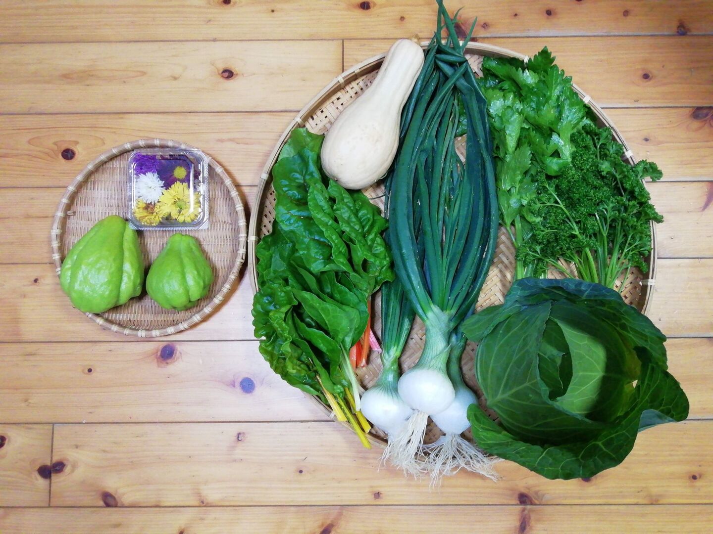 【農薬化学肥料不使用】ハヤトウリ入り野菜セット【8種類以上の野菜】【あわせ買い可】【熨斗(のし)対応可】(80サイズ箱)