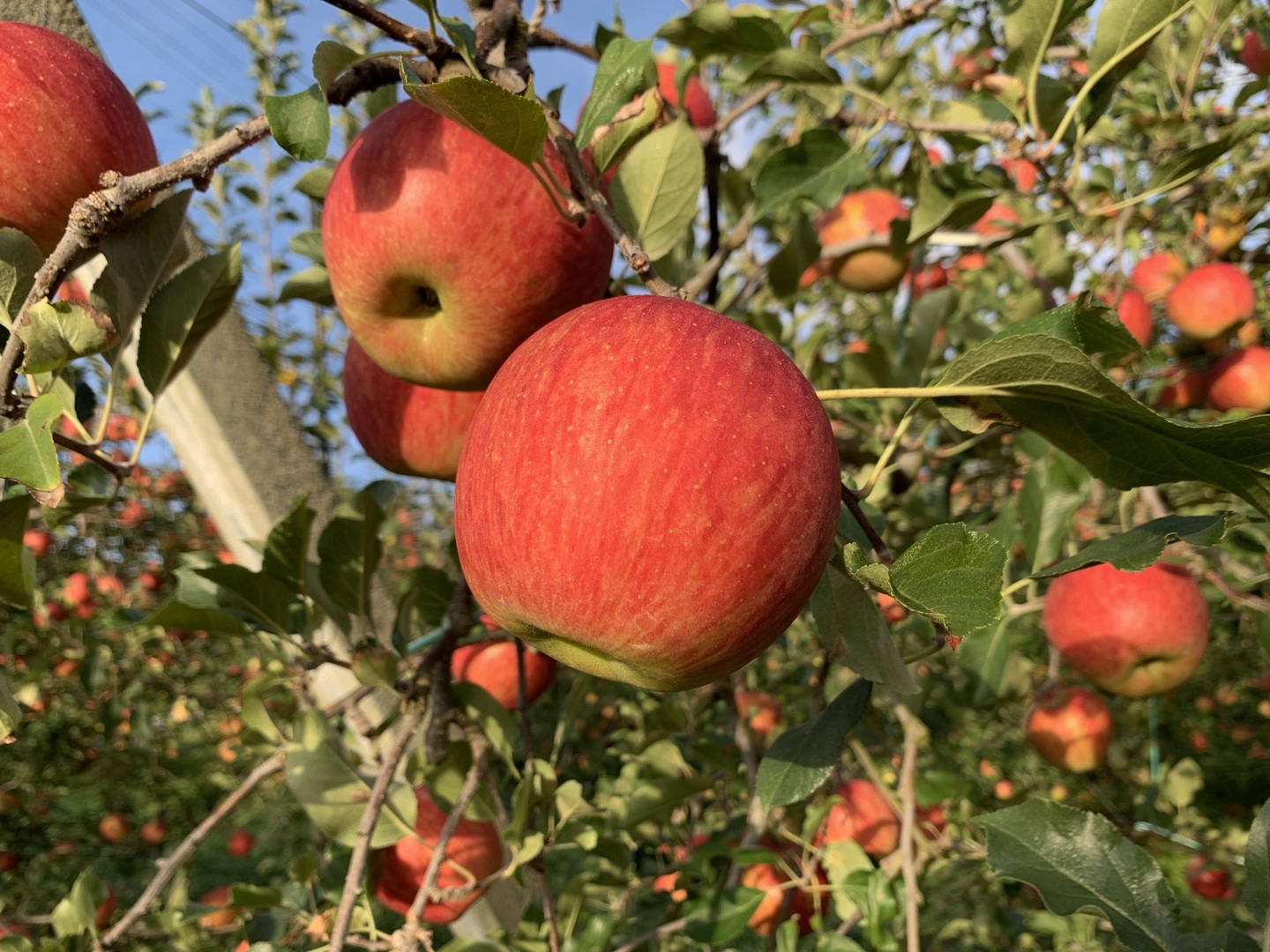 伊那谷でも当農園がある標高700m、かつて「増野原」と呼ばれた高台の一帯は、知る人ぞ知るりんごの名産地。高台の山肌にあり、澄みきった空気のなか昼はサンサンと太陽があたるため、りんごがスクスク育ち、夜は夏でもクーラーが不要なほど急激に冷えるためりんごが身を守ろうとします。この繰り返しによって甘さやコクがある歯ごたえの良いりんごができます。