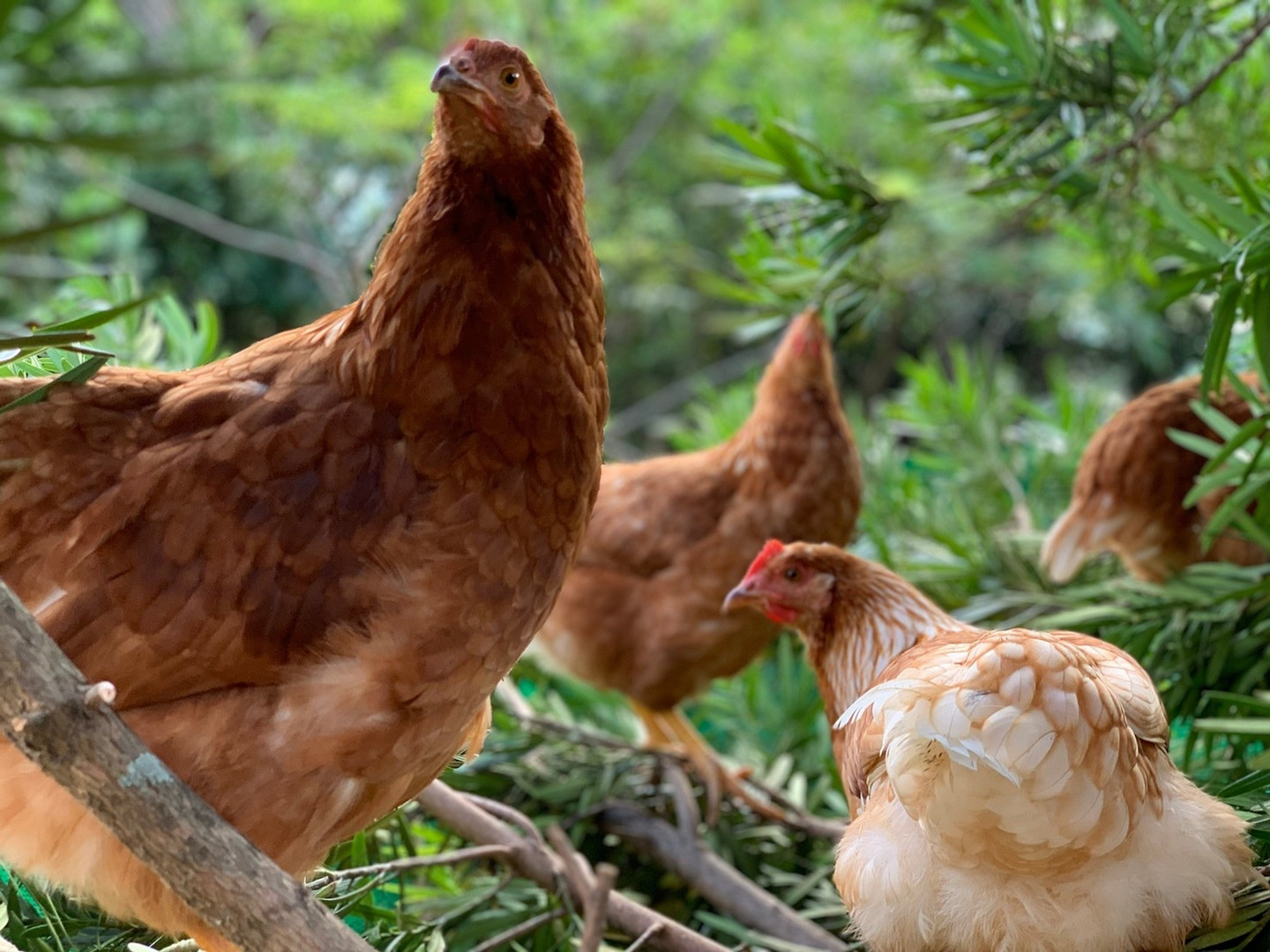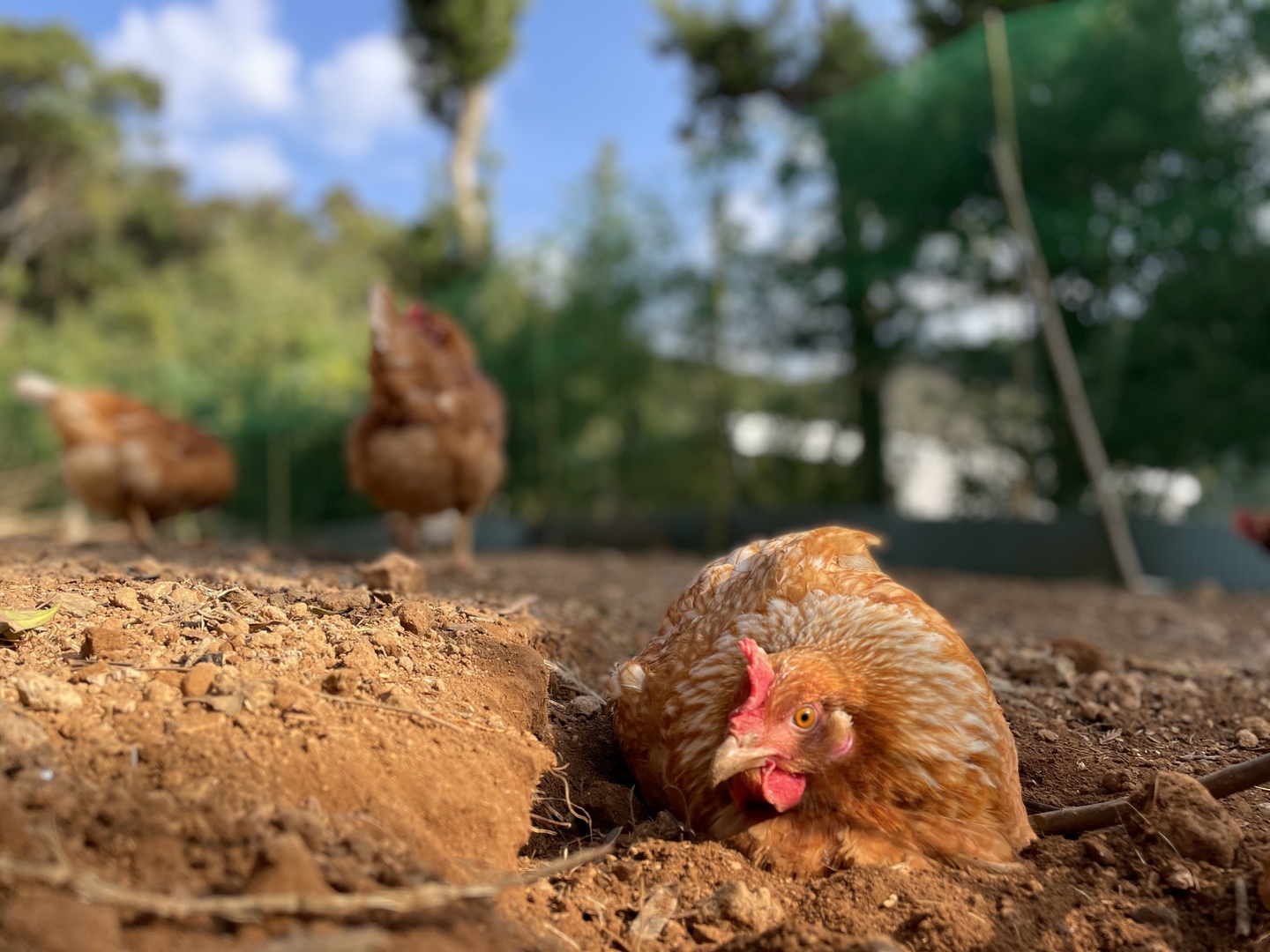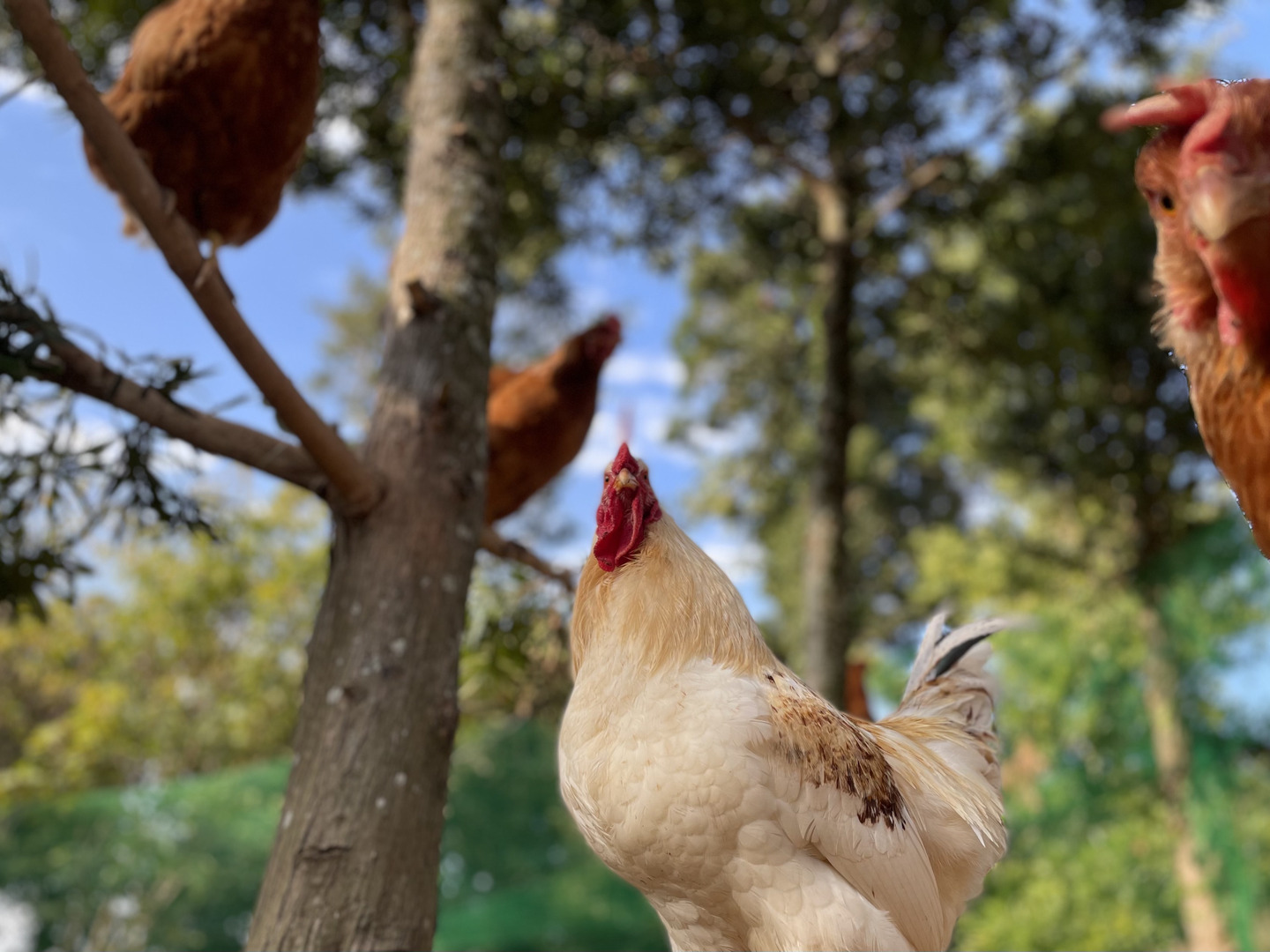 ナチュラルエッグラボの鶏たちは、屋外で太陽の下、各々楽しみながら過ごします。