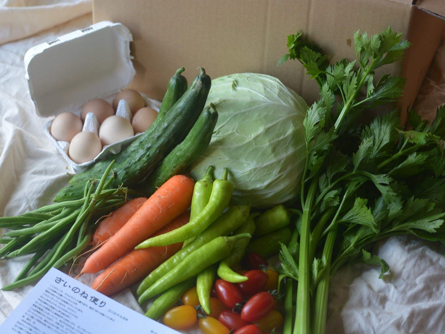 季節の旬の野菜等とたまごをセットにして宅急便でお届けします。