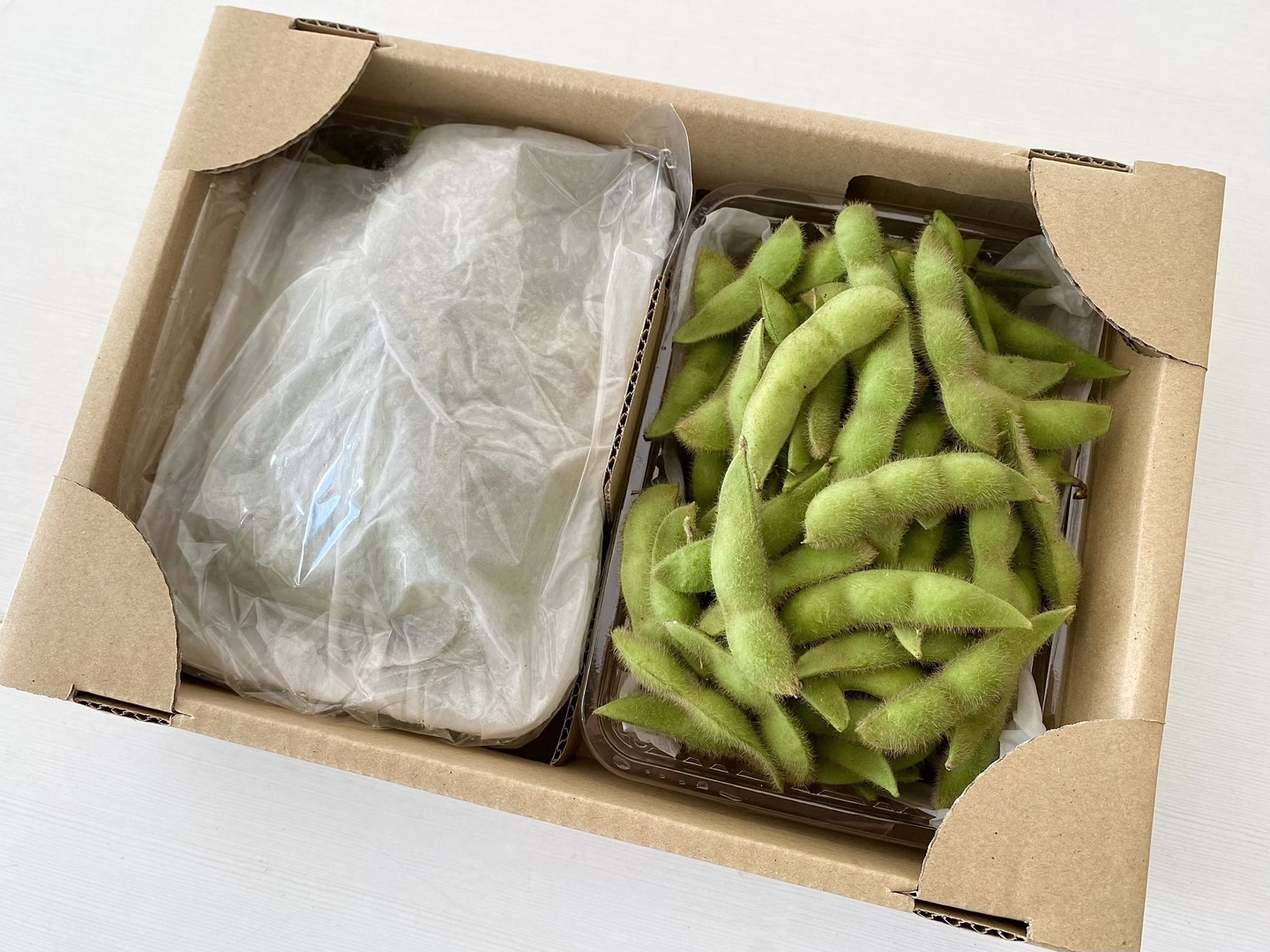 枝豆は乾燥すると風味が損なわれてしまいます。なのでトップ写真の左側のように濡れたキッチンペーパーでくるみ、袋詰めしています。