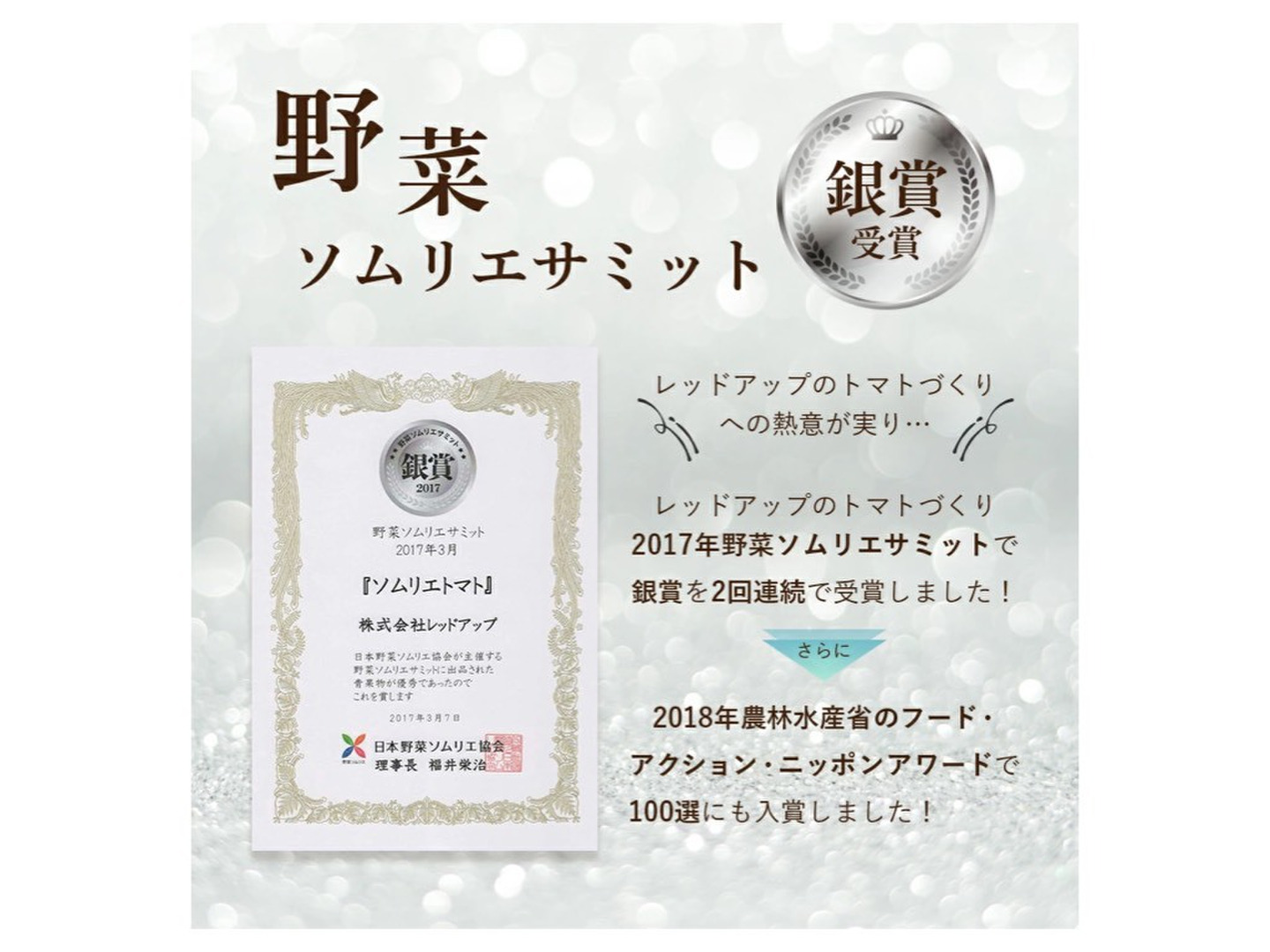 - 皮が薄く酸味が少ないためお子様から高齢者まで親しまれるソムリエトマト