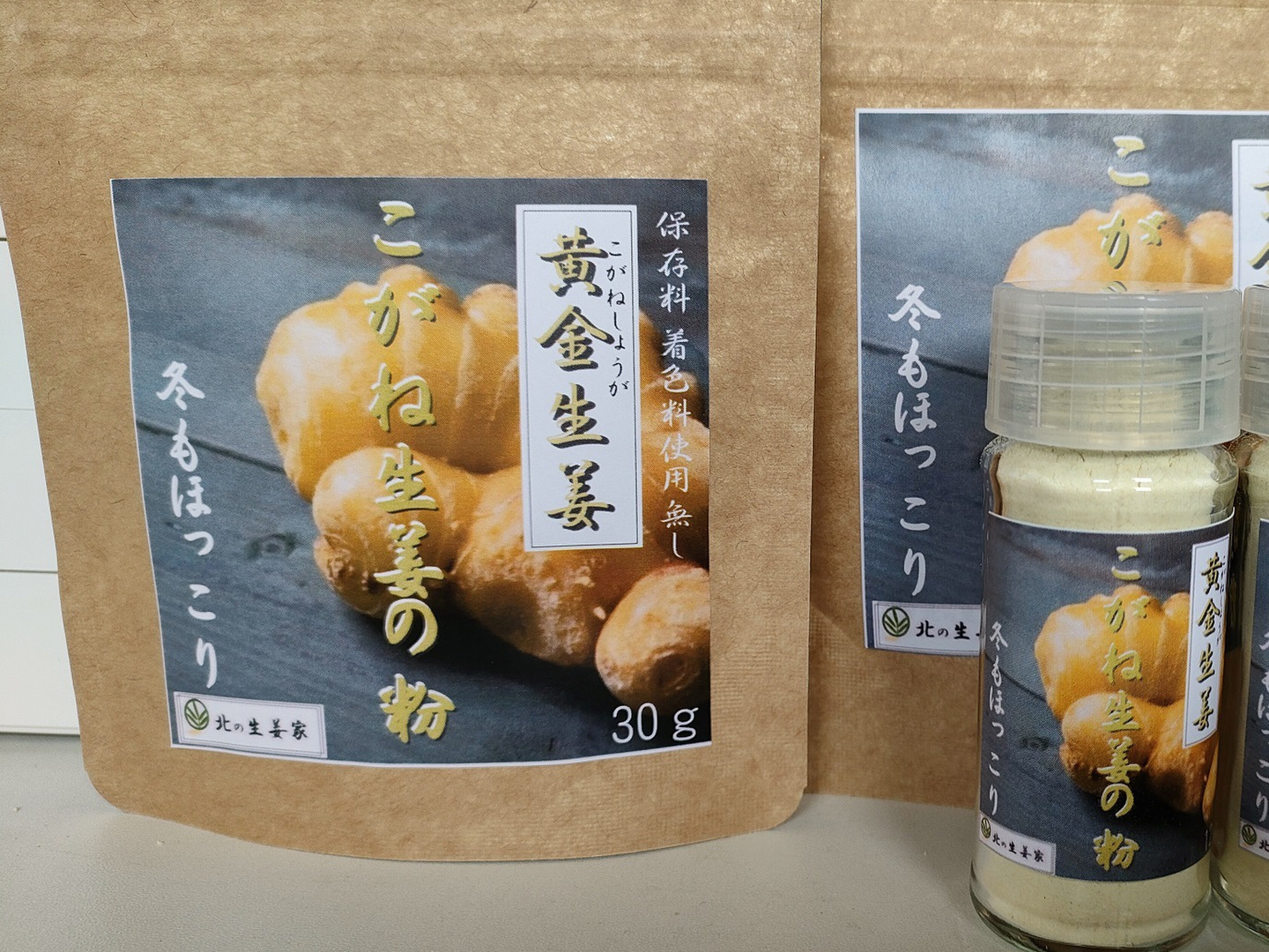 黄金生姜の粉(袋タイプ)30gと黄金生姜の粉(瓶タイプ)12gのセットです。