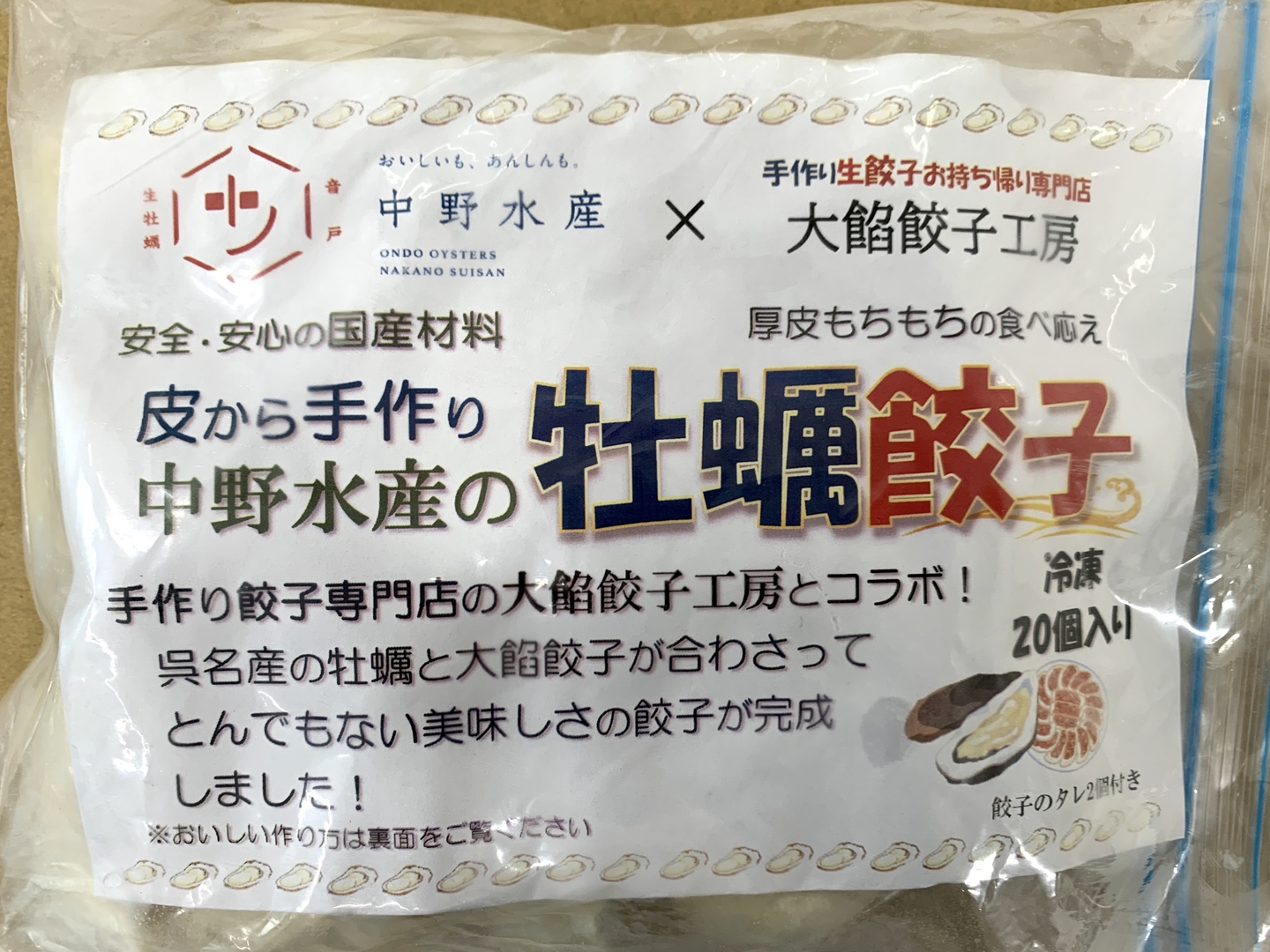 商品について あわせ買い対象 同生産者の別の「あわせ買い対象」商品と一緒にご注文いただくと、送料をまとめてお届けできる場合があります。 生産者からのお知らせ ◯商品のお届け日について◯弊社は、ヤマト運輸に配送をお願いしています。広島県を発送しお客さまにお届けできるまでにかかるお日にちは、画像にある通りです。①地域:発送日から翌日午前中から選択可能②地域:発送日から翌日14〜16時から選択可能③地域:発送日から翌々日午前中から選択可能※冷凍商品は、1〜2日早めに発送することがあります。 お届け希望日に届きますので、よろしくお願い致します。悪天候時(大雨・台風・大寒波)には、お届け日やお届け時間帯に遅れが生じる場合が稀にあります。 もっと見る 内容 急速冷凍カキフライ250g(7粒以上)、冷凍牡蠣餃子20個入り 発送 ヤマト運輸(食べチョク特別送料) 送料 ¥ クール便(冷凍) + ¥ 275 複数注文すると送料がまとまります。 種別 魚介類 貝類 牡蠣 加工品 惣菜系 唐揚げ・フライ 加工品 惣菜系 餃子・しゅうまい 産地 広島県 養殖 魚介類 加工品 贈答品 家庭用 ビニール包装 牡蠣 唐揚げ・フライ 餃子・しゅうまい 広島県x魚介類 広島県x加工品 広島県x貝類 広島県x牡蠣 広島県x惣菜系 広島県x唐揚げ・フライ 広島県x餃子・しゅうまい 商品説明 大好評のカキフライと美浄生牡蠣を使用した牡蠣餃子のセット商品です。中野水産の不動の人気のカキフライと美浄生牡蠣と本場の中国餃子大餡餃子工房がタッグを組みました!どちらも凍ったまま調理できます。牡蠣餃子の消味期限が近いので(1月)お値下げ価格!○調理例○・カキフライ凍ったまま油で5分程度あげるだけ!簡単にカキフライを召し上がることができます。・牡蠣餃子水餃子鍋にたっぷりのお湯を沸かし、沸騰する直前に凍ったままの餃子を鍋に入れます。餃子が浮かんできたら中火にして5〜8分そのまま茹でて、出来上がりです!焼き餃子フライパンまたはホットプレートを軽く熱して油をひき、凍ったままの餃子を並べます。強火にして220ccの水または湯を入れ、フタをします。沸騰したら火を中火に弱め、6〜8分じっくり蒸し焼きにします。水分が無くなってきたらフタを開け、余分な水分を飛ばします。仕上げにごま油を少量加えますと風味が増します。底がきつね色になったら焼き上がりです!○消費期限○カキフライ 製造日より180日牡蠣餃子 製造日より90日初めての方は、下記もお読みいただけると嬉しいです。<自己紹介>中野水産です。全国有数の牡蠣の産地、広島県呉市音戸町の中野水産は、「おいしいも。(美味)あんしんも。(清浄)」をモットーに、美味しさにも、食の安全・安心にも徹底的にこだわった、栄養満点の「美浄生牡蠣(びじょうなまかき)」を生産者直送で全国にお届けしています。独自のろ過海水設備による浄化工程を経て、臭みがなく牡蠣本来の甘みたっぷりに仕上がった極上の「美浄生牡蠣」を是非ご賞味ください。<味>最初から最後まで浄化海水を使用している美浄生牡蠣は、調理しても縮みが少なく大きくプリプリのまま風味豊か。プリプリ食感で風味豊かな甘い旨みがじゅわっと溢れる美浄生牡蠣は、蒸して、焼いてとどんな調理にもよく合います。レモンと合わせてシンプルにいただくのも絶品です。臭みがなく甘みいっぱいだから、これまで牡蠣を食べられなかった方も美浄生牡蠣なら食べられるというお声を多くいただいています。<栽培のこだわり・産地の特徴>広島県が指定する清浄海域「音戸の瀬戸」沖で、綺麗な海水と豊かな栄養分をお腹いっぱいに吸い込んだ海の恵み。食卓を囲むたくさんの笑顔を想って、日々大切に育てて出荷しています。 もっと見る この商品のことをお友達にもシェアしませんか ポスト シェア