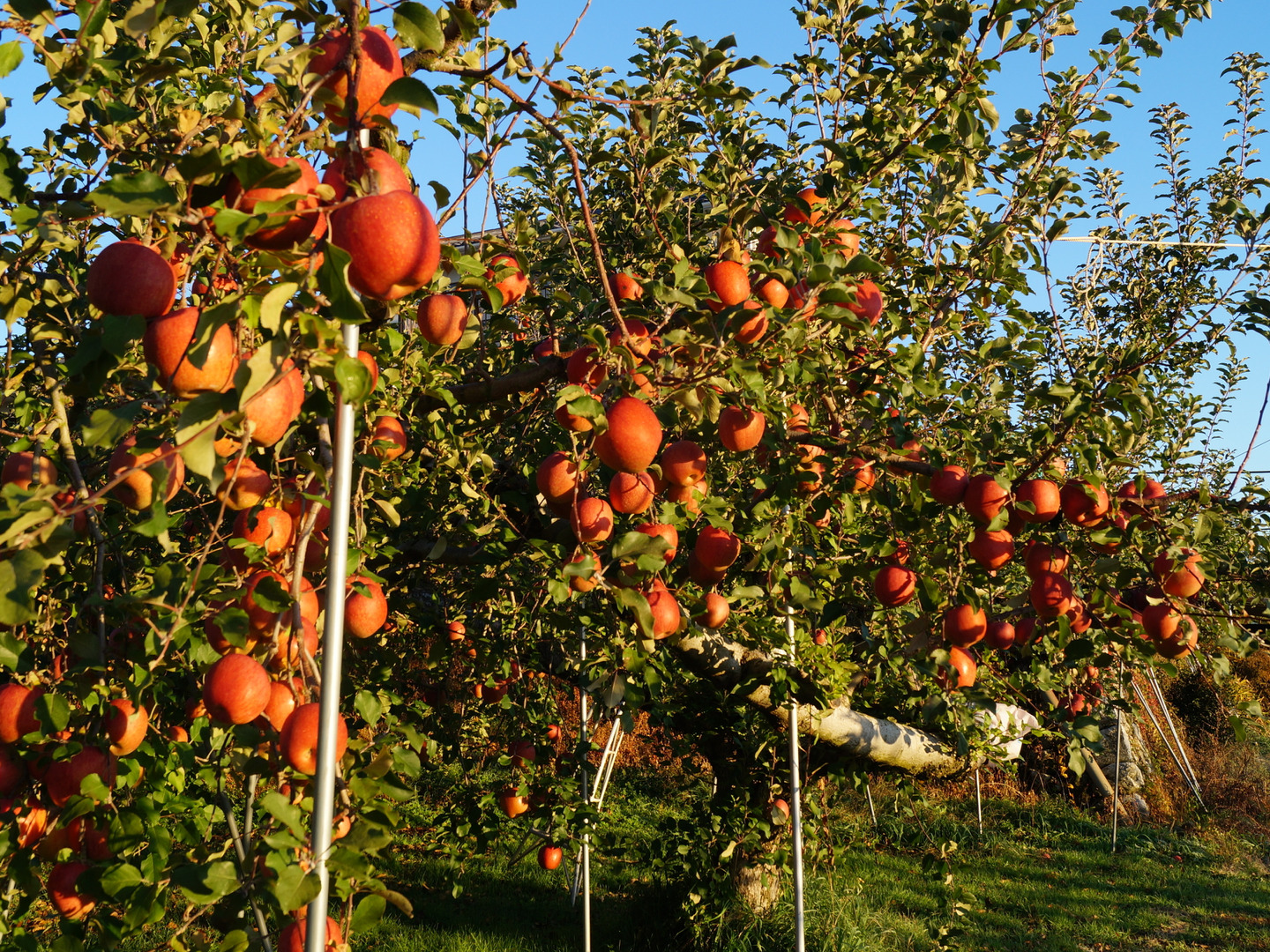 私たちの農園では2014年から苗木を育て始め、今では7品種1000本のリンゴの樹が実をつけるようになりました。