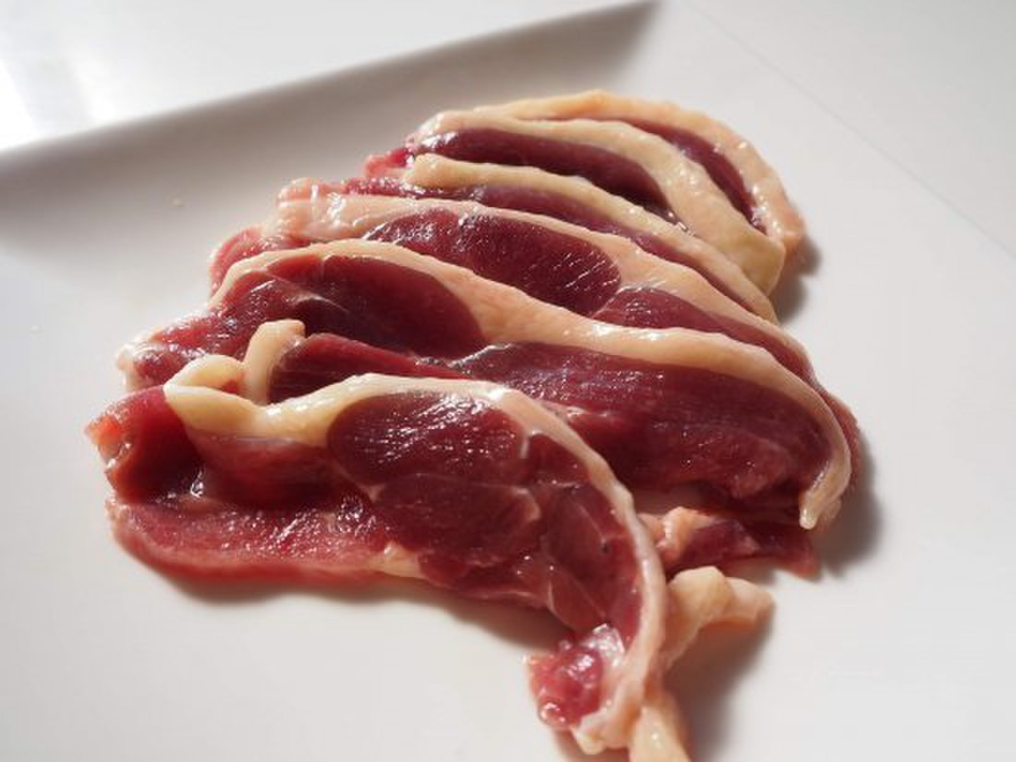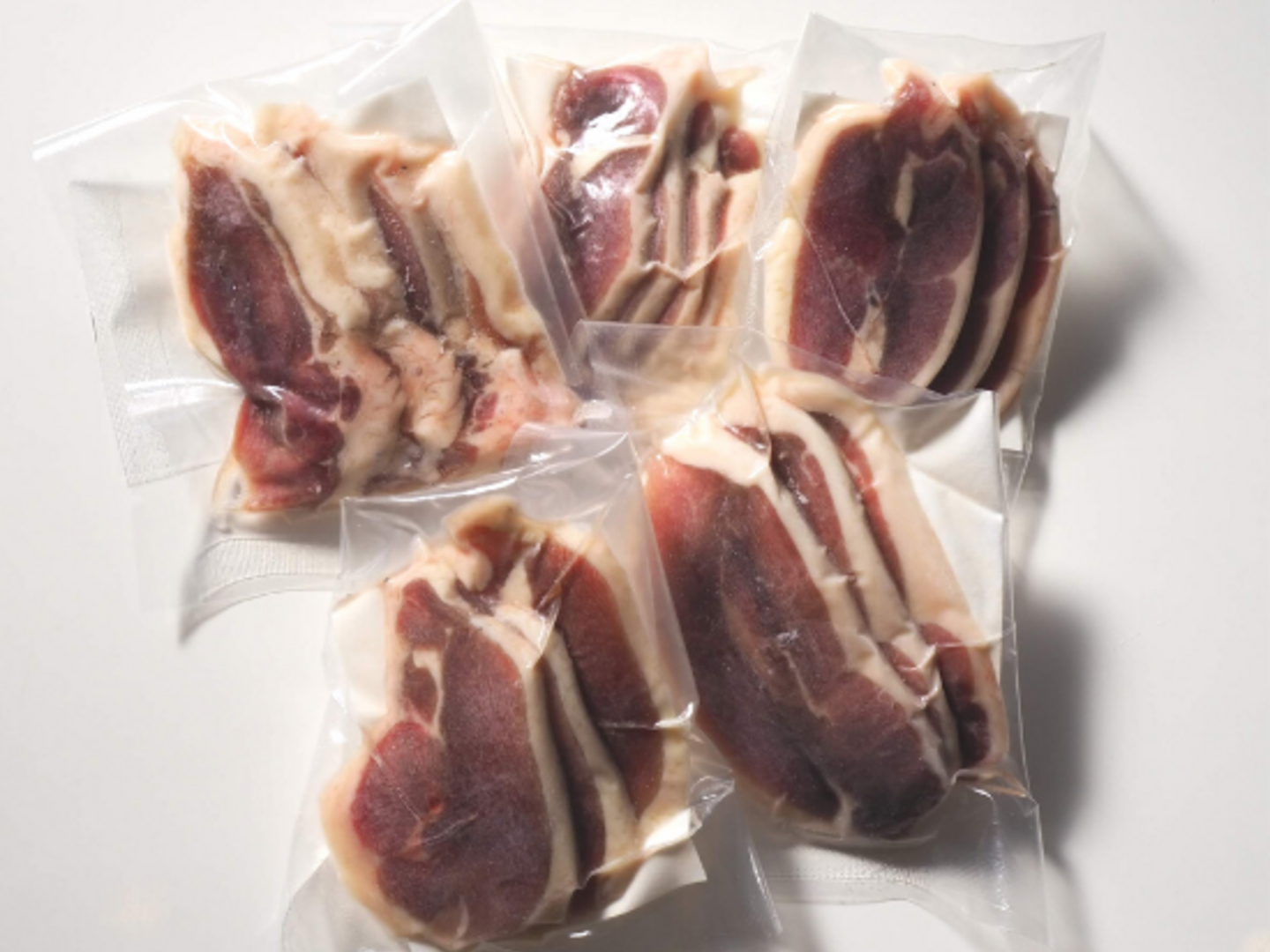 今回は、お料理に使いやすいようにスライスを1袋ずつ個包装にしています。1個に5〜6枚鴨肉が入っています。