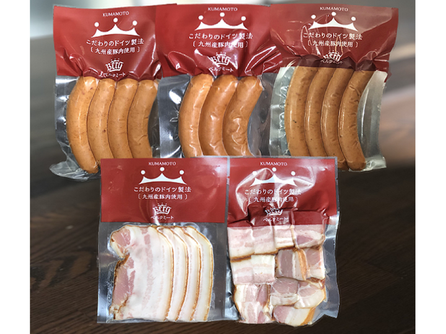 お試し5点セット(ドイツフランク、ウインナー、スパイシーソーセージ、ベーコンスライス、ベーコン切り落し)