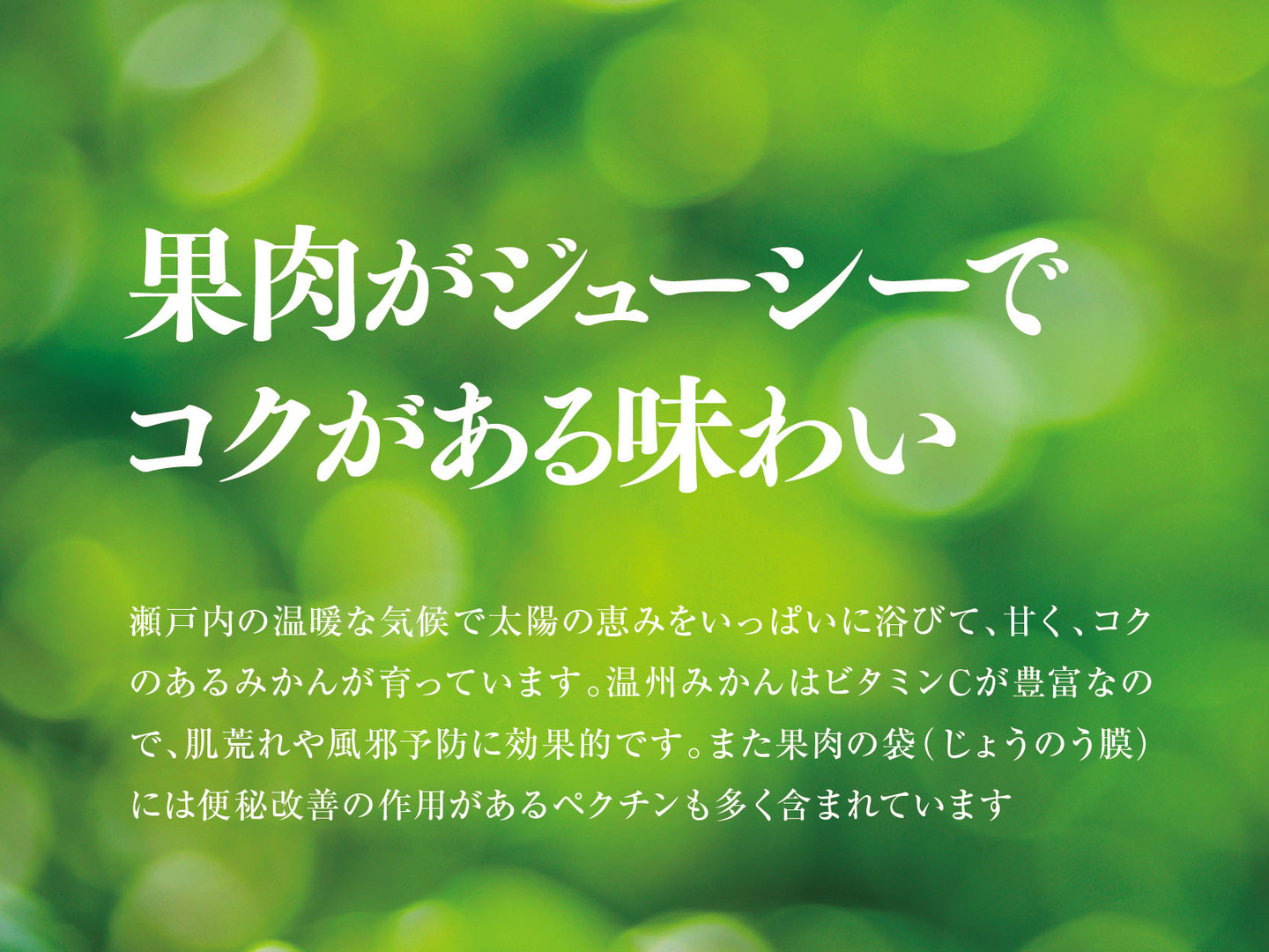 商品について あわせ買い対象 同生産者の別の「あわせ買い対象」商品と一緒にご注文いただくと、送料をまとめてお届けできる場合があります。 内容 みかん!みかん! そらみかん 愛媛産みかん 5kg 重量・容量 約5kg 発送 ヤマト運輸 送料 ¥ 常温便 + ¥ 0 数量1点ごとに送料が発生します。 種別 果物 みかん・柑橘類 果物 みかん 品種おまかせ 産地 愛媛県 農薬節約栽培 果物 贈答品 家庭用 品種おまかせ 愛媛県x果物 愛媛県xみかん・柑橘類 愛媛県xみかん 愛媛県x品種おまかせ 商品説明 「空に近い果樹園から届く極上の柑橘」果肉がジューシーでコクある味わい。瀬戸内の温暖な気候で太陽の恵みをいっぱいに浴びて、甘く、コクのあるみかんが育っています。温州みかんはビタミンCが豊富なので、肌荒れや風邪予防に効果的です。また果肉の袋(じょうのう膜)には便秘改善の作用があるペクチンも多く含まれています。毎日のビタミン補充に、免疫力アップに、農家から直接届く自然の恵いっぱいのそらみかんをお届けします。 もっと見る この商品のことをお友達にもシェアしませんか ポスト シェア
