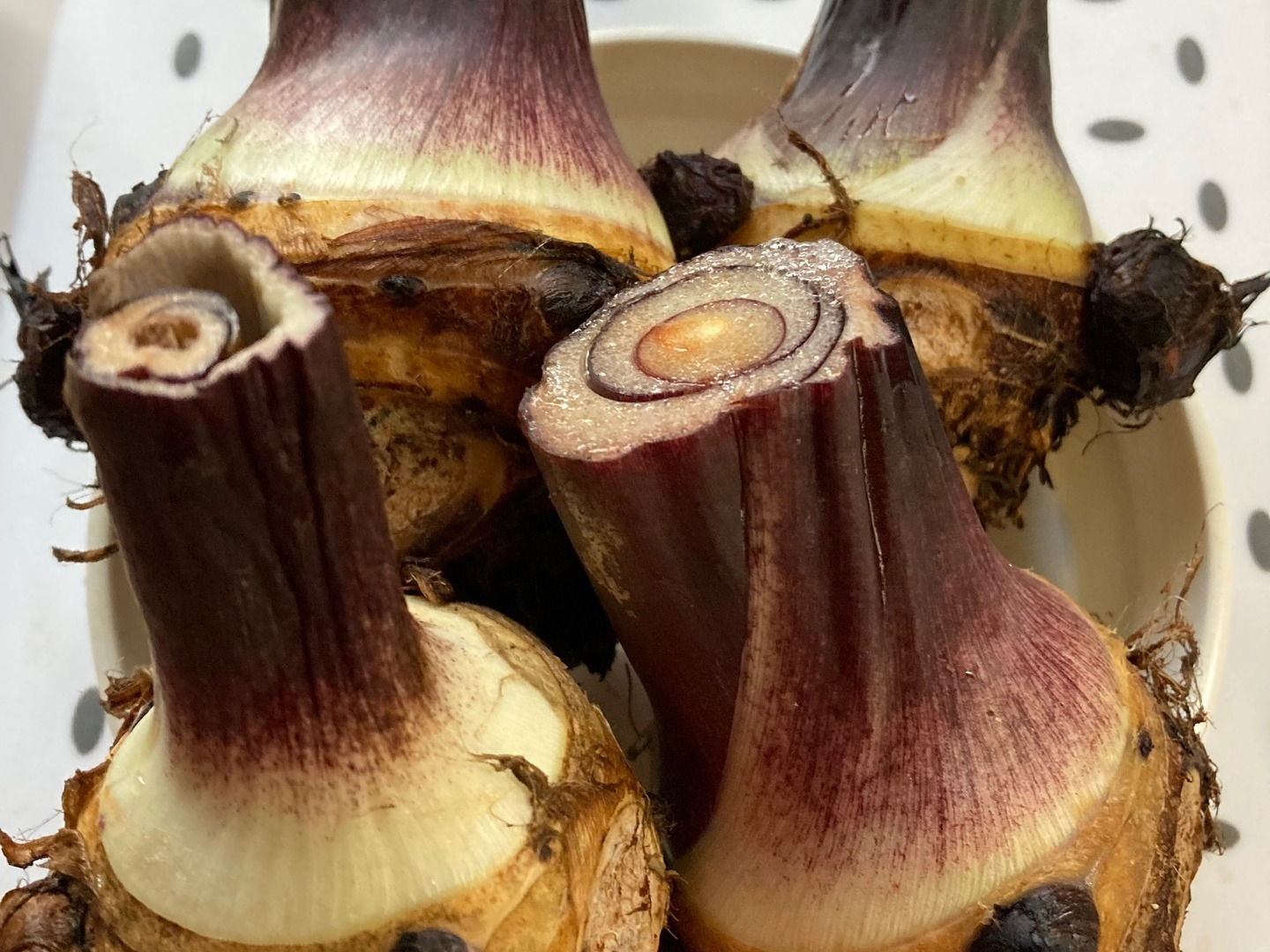自然農法*赤里芋の親芋美味。硬い部分がほとんど無し。すぐに煮える。美味しくて2㎏くらいは、すぐに食べてしまいますよ❣2㎏(10個前後)の予約受け。11月中旬頃発送予定。