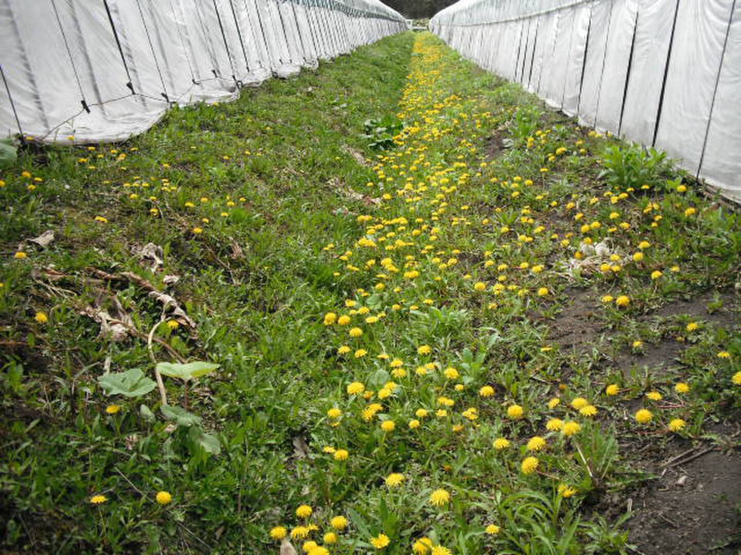 「自然の力を借りて、農業をさせてもらっている」という意識で、環境にできるだけ負荷をかけないため、農薬と化学肥料を一切使用しないのはもちろんのこと、ハウス周辺の雑草も、除草剤で枯らすことなく、必要な範囲のみすべて手作業で刈っています。