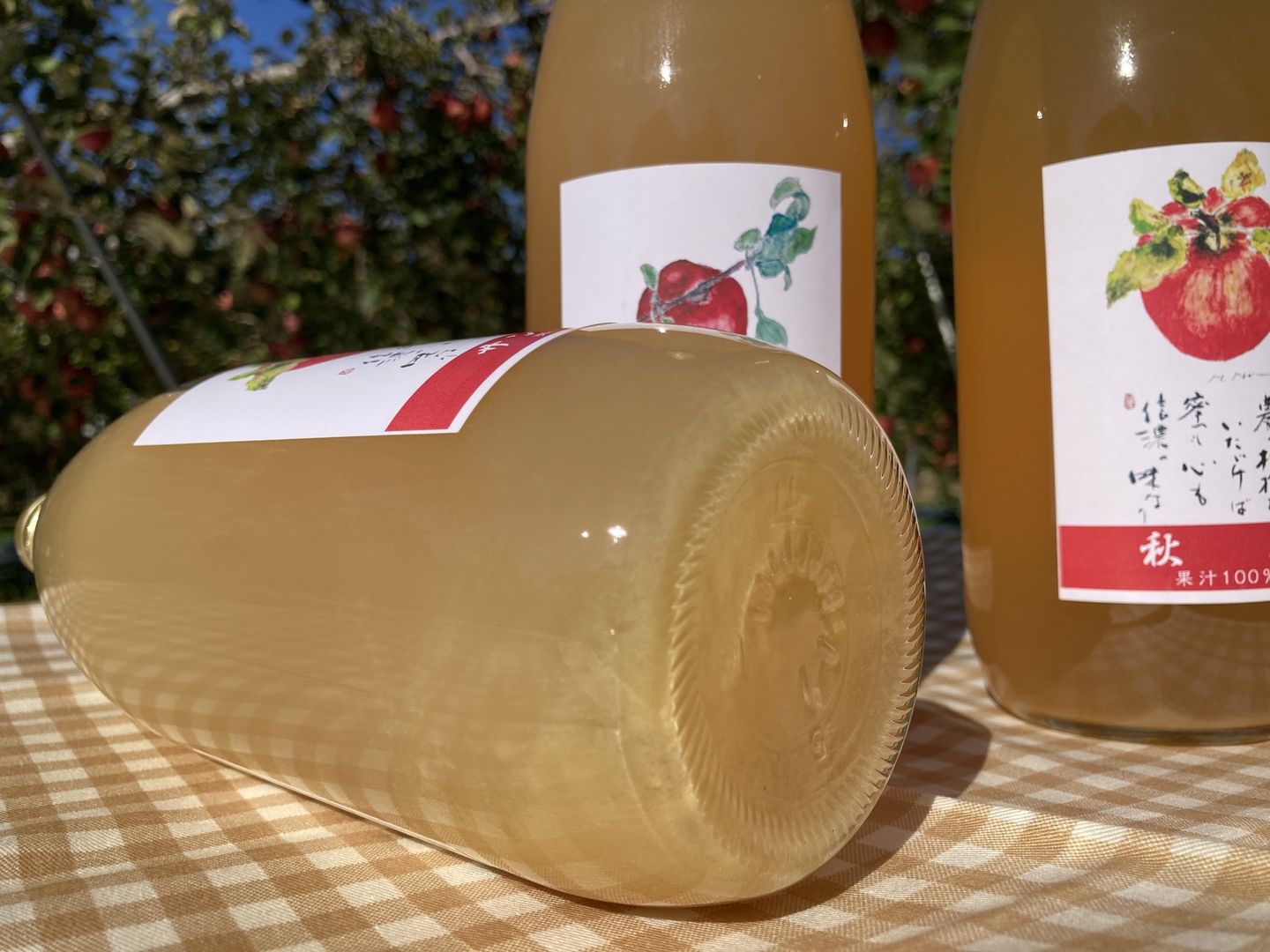 果樹園で育てたりんごを皮ごとギュッと絞ってジュースにしました。