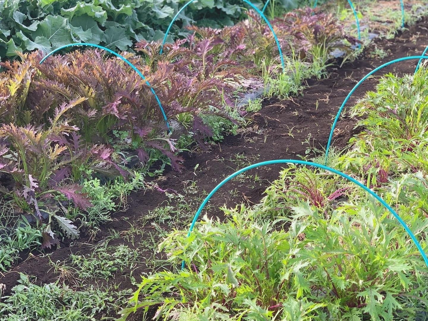 コマツナ 、赤水菜、ルッコラ、カツオ菜、ホウレンソウ、カブ、赤カブ、サラダケール、カーボロネロ、ミニ大根、ミニキャベツ、サラダ白菜、スティックセニョール 、ニンジン、サツマイモ 、ジャンボ生落花生、サトイモなど。