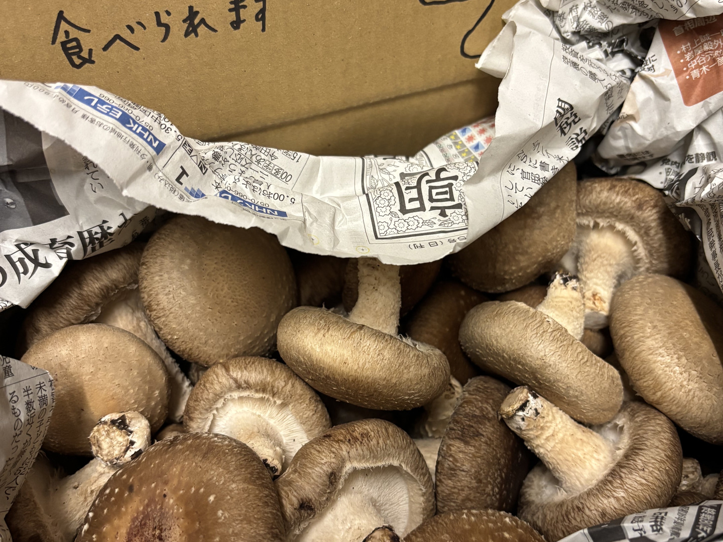 特選品よりかさが少し開いていたり、成長過程で他のしいたけに押されて少し形が変形しているしいたけ達です。