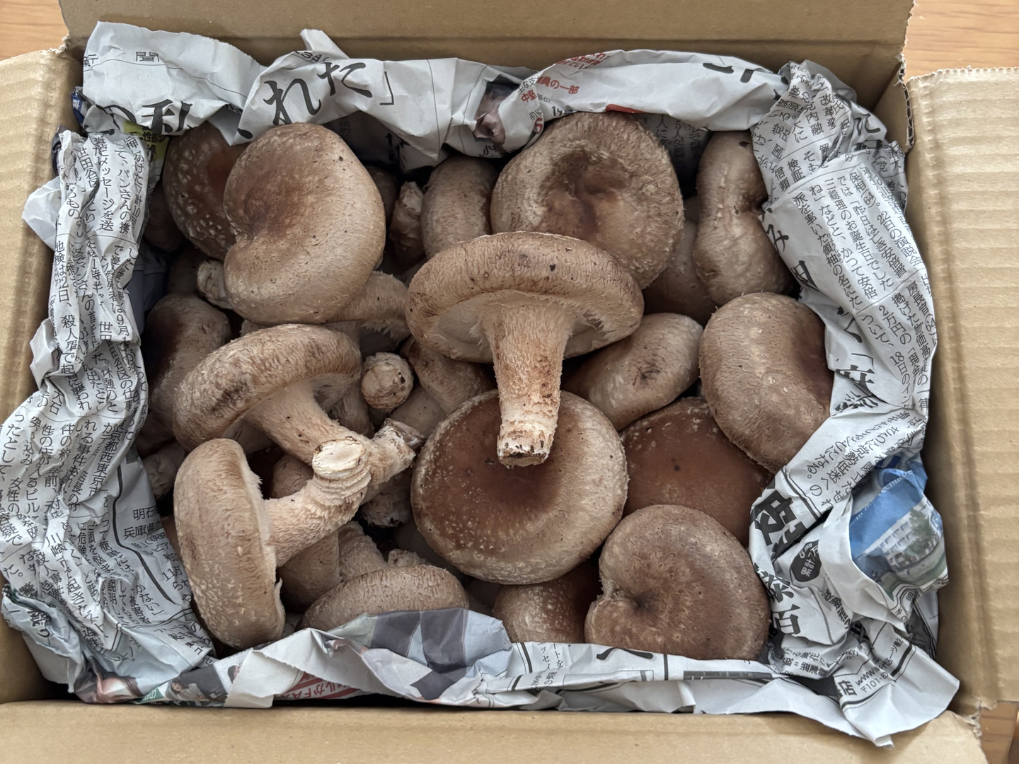 特選品よりかさが少し開いていたり、成長過程で他のしいたけに押されて少し形が変形しているしいたけ達です。