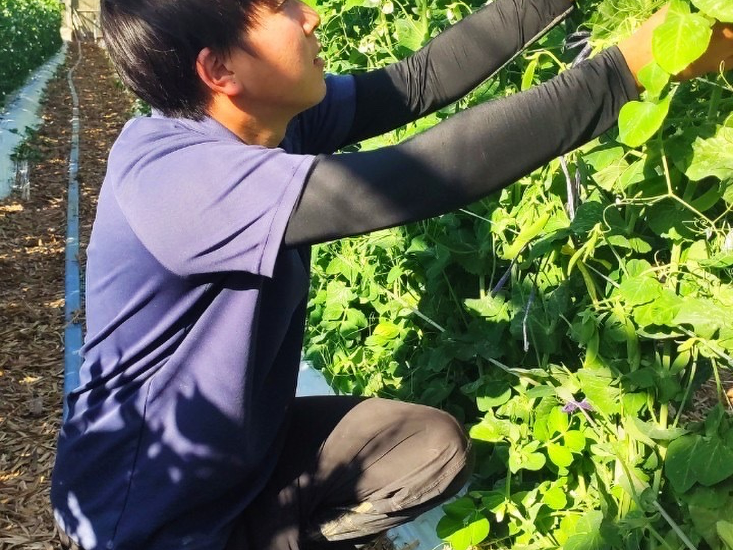 エンドウは基本的に屋外の畑で栽培する露地栽培が主流なのですが、白柴農園ではハウス栽培を採用しています。