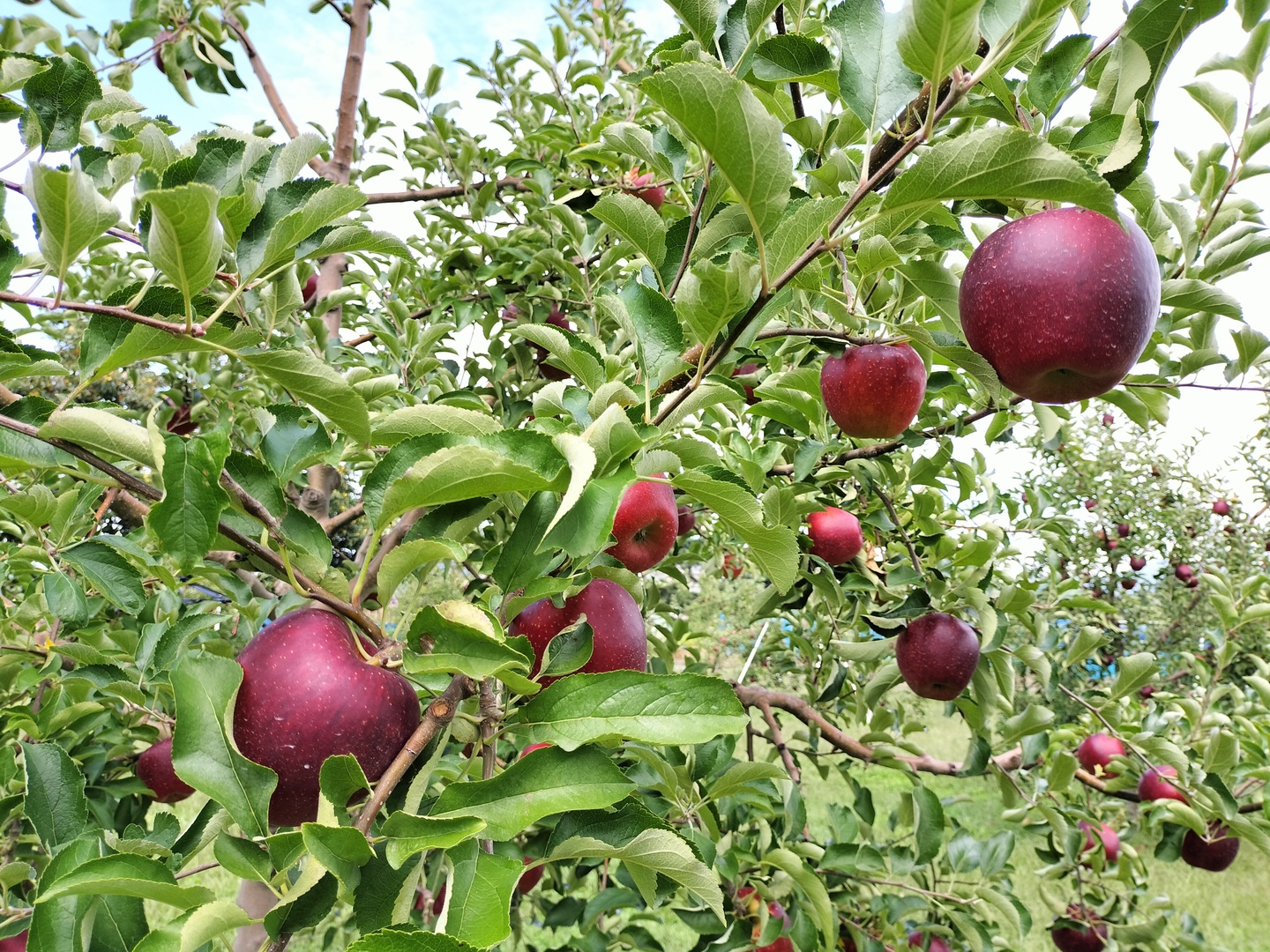 私たちは主にシャインマスカットなどの大粒ぶどうを栽培していますが、りんごも1種類だけ栽培しています。