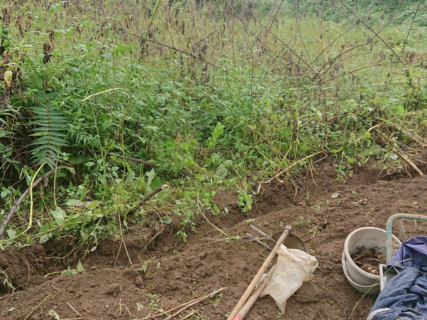 このところサツマイモ、落花生、ジャガイモ、カボチャ.等、野生動物の食害にあっていますが、キクイモやサトイモは無事でした。デンプンが少ないので敬遠されてるのかも。ほかの食べ物がなくなったら食べられてしまう(笑)