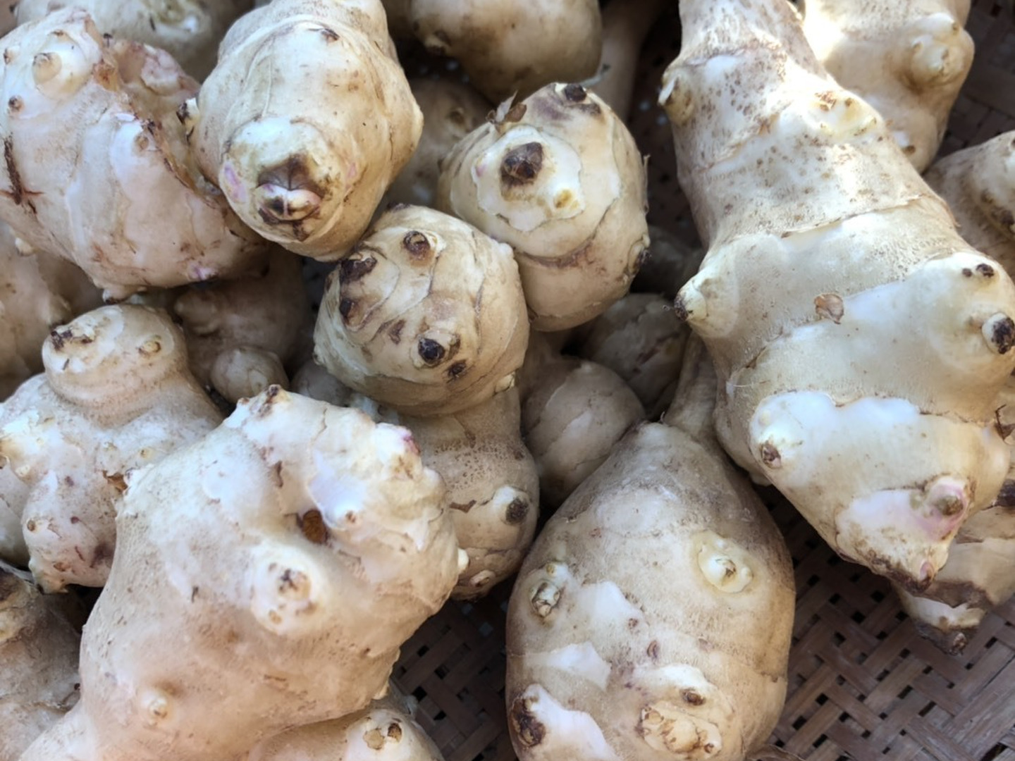 キクイモには「天然のインシュリン」といわれる「イヌリン」という成分を豊富に含んでいることから、美容や健康面から注目を集めています。水溶性食物繊維が豊富でお通じにとてもいいです。生でもサラダ風で食べられますが、我が家で常備食にしているのは酢多めの甘酢漬けです。ポリポリやってます。たまにゴマ油のキンピラも。でも食べ過ぎは注意です。