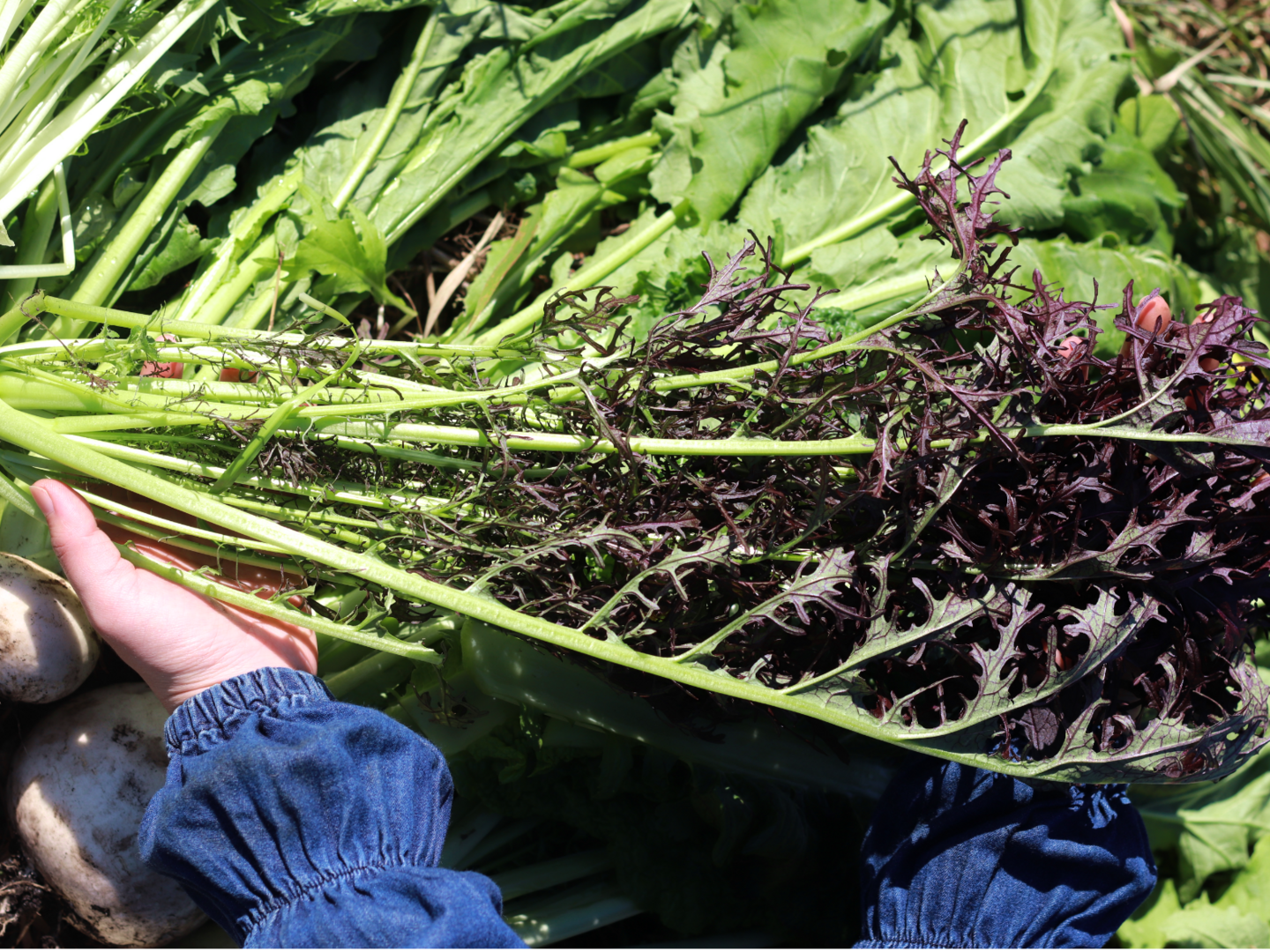 からし菜の味と京菜の葉型をもったサラダ用菜っ葉です。